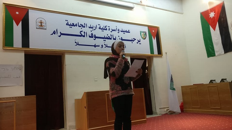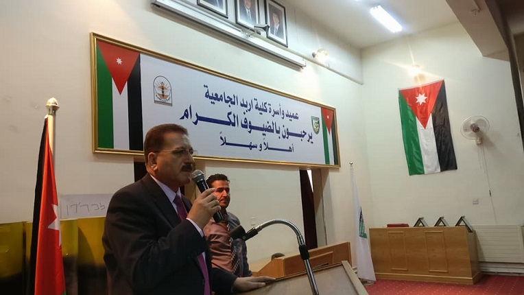 والقى عميد الكلية الدكتور مفضي المومني كلمة رحب فيها بالحضور مؤكدا ان هذة المناسبة غالية على قلوب الاردنيين و ان على كل اردني واردنية ان يفتخر ويعتز بالقيادة الهاشمية الحكيمة وبجهود جلالته في النهوض بالوطن والامة والدفاع عن جميع قضاياها وخاصة القضية الفلسطينية والقدس .