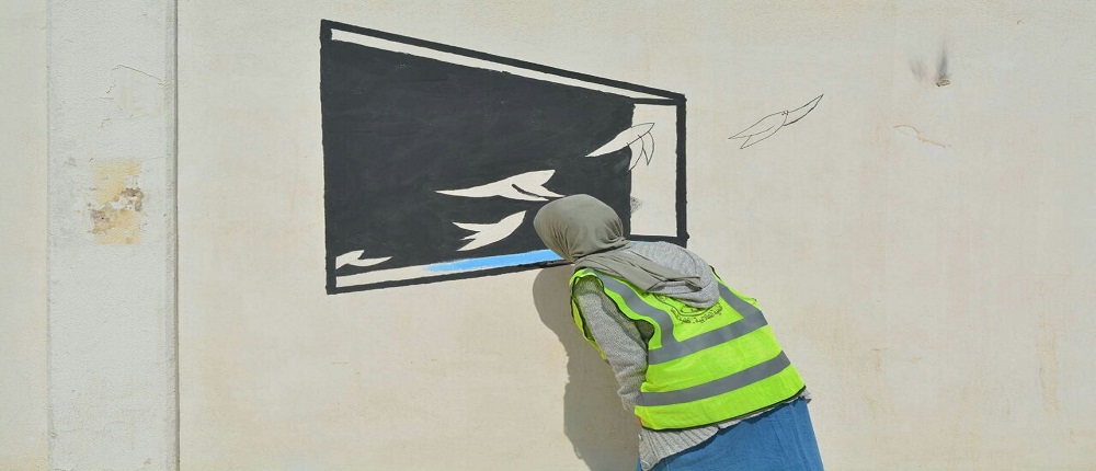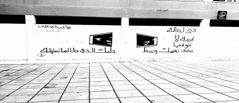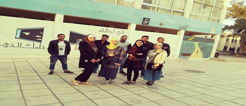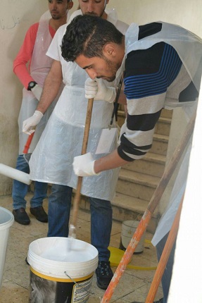 وقام الطلبة المشاركون بطلاء عددٍ من جدران الكلية" المبنى التجاري" ، بالإضافة الى رسم جداريات تحاكي تخصصات الكلية وتحث الطلبة على العلم والتعلم.