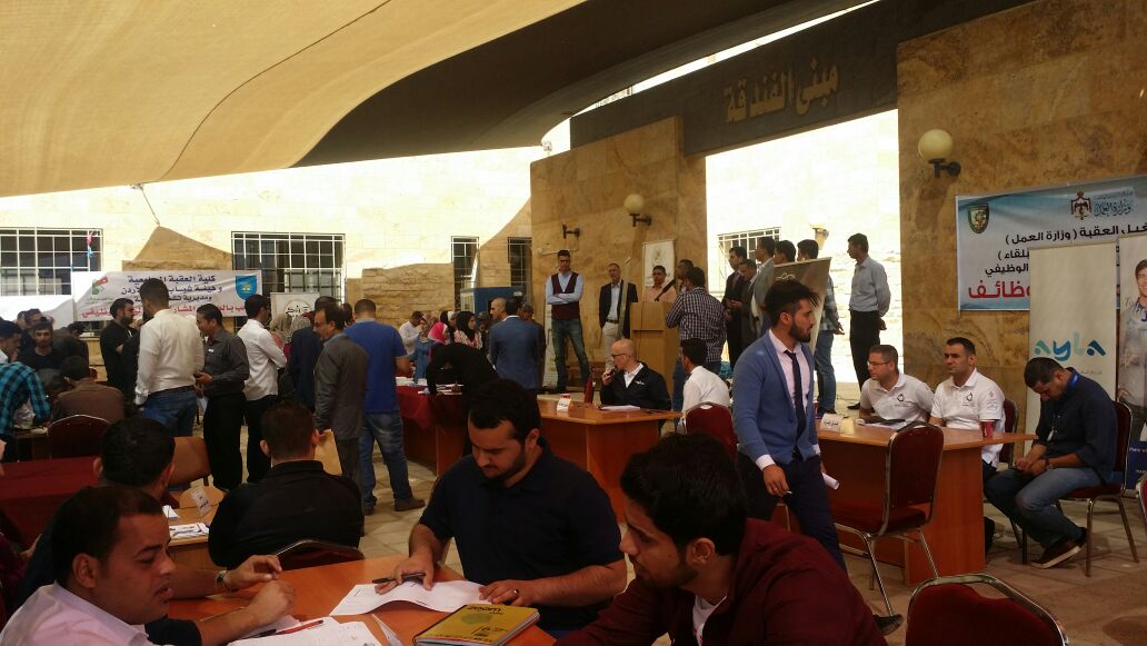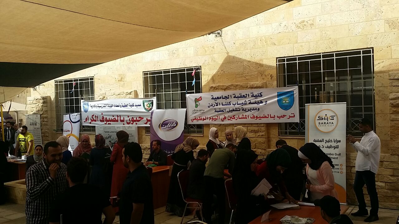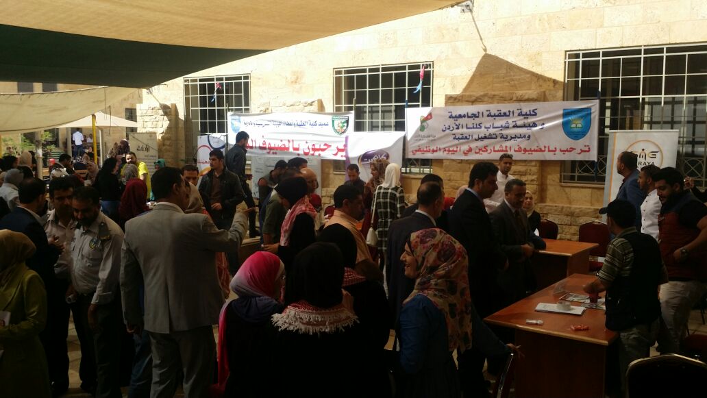 اقيم اليوم الأحد يوم وظيفي في كلية العقبة الجامعيه بالشراكه مع وزارة العمل ممثله بمديرية التشغيل في محافظة العقبه وصندوق الملك عبد الله للتنميه