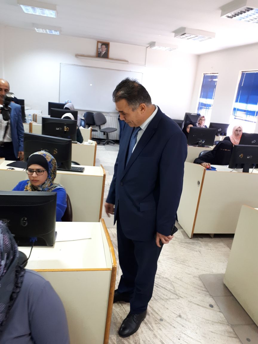 الأستاذ الدكتور عبد الله سرور الزعبي رئيس اللجنه العليا لامتحان الشهادة الجامعيه المتوسطه (الامتحان الشامل)يتفقد قاعات امتحانات  الدورة الربيعيه