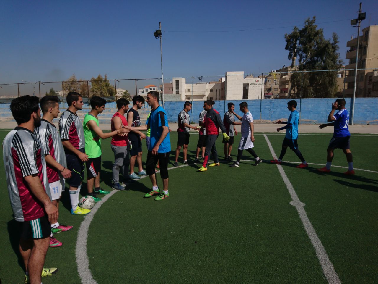 ضمن الأنشطة اللامنهجية والتي تقيمها كلية الزرقاء الجامعية مع المجتمع المحلي،نظم قسم النشاط الرياضي في الكلية مباراة ودية في خماسي كرة القدم بين فريق كلية الزرقاء الجامعية وفريق مديرية دفاع مدني الزرقاء .وانتهت لصالح الدفاع المدني بواقع 4/3