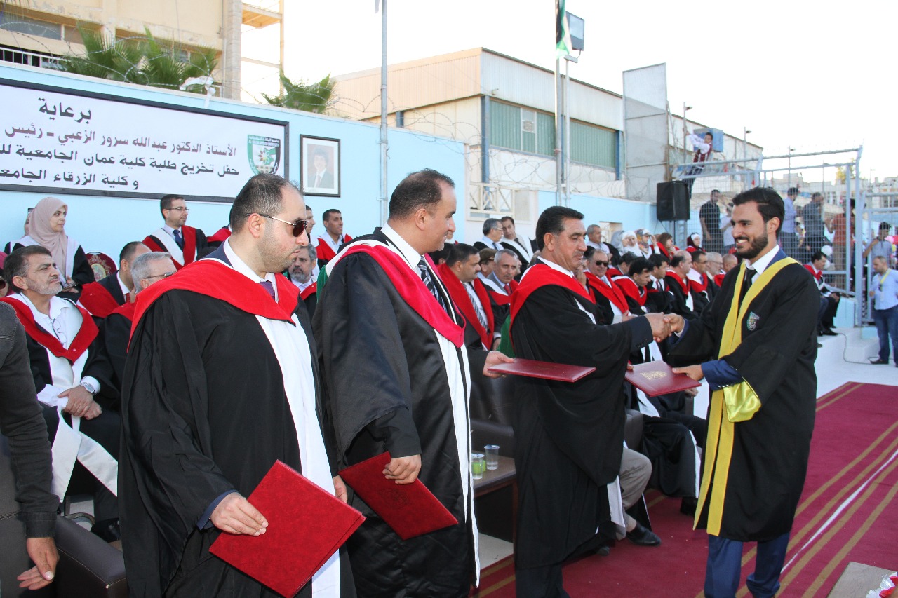 وفي ختام الحفل الذي استهل بتلاوة من الذكر الحكيم وعزف للسلام الملكي الاردني وجرت فعالياته على ملعب الجامعة في السلط سلم الدكتور العواملة مندوب راعي الحفل الشهادات على الخريجين والذين بلغ عددهم (887) طالبا وطالبة موزعين على كافة التخصصات التي تحتضنها كليتي عمان والزرقاء الجامعيتين.