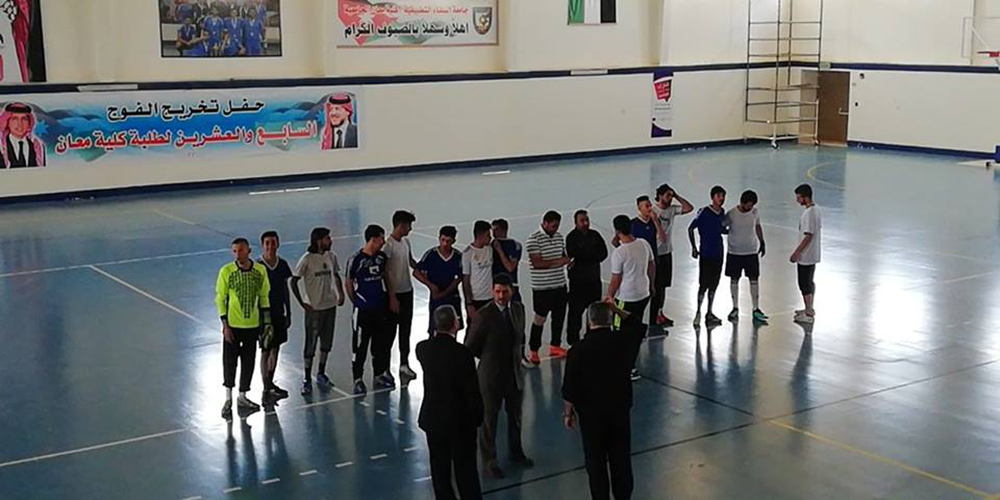 تحت رعاية عميد كلية معان الجامعية الدكتور عودة مراد اختتمت اليوم في صالة كلية معان الجامعية بطولة كلية معان لخماسي كرة القدم حيث جرت المباراة النهائية بين فريقي الصيانة 2 وفريق المساحة وأسفرت المبارة عن فوز فريق الصيانة2 على المساحة بنتيجة 4 - 1 وفي نهاية اللقاء الذي حضره عميد كلية معان الجامعية وأعضاء الهيئتين التدريسية والإدارية وطلبة الكلية قام عميد الكلية الدكتور عودة مراد بتتويج الفريق الفائز وتسليمه كأس البطولة وتوزيع الميداليات على أعضاء فريقي المركز الأول والثاني.
