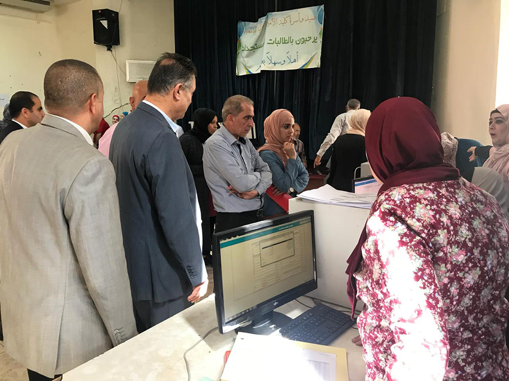 واطلع رئيس الجامعة على الخطوات التي تمر بها الطالبات بدءاً من استقبالهن وذويهن مروراً بالإجراءات اللاحقة بتسجيل المواد الدراسية فالحصول على دليل الطالب الذي يتضمن التشريعات الناظمة لكل ما يحتاجه الطالب في الجامعة خلال فترة دراسته، فدفع الرسوم حتى الحصول على الهوية الجامعية.