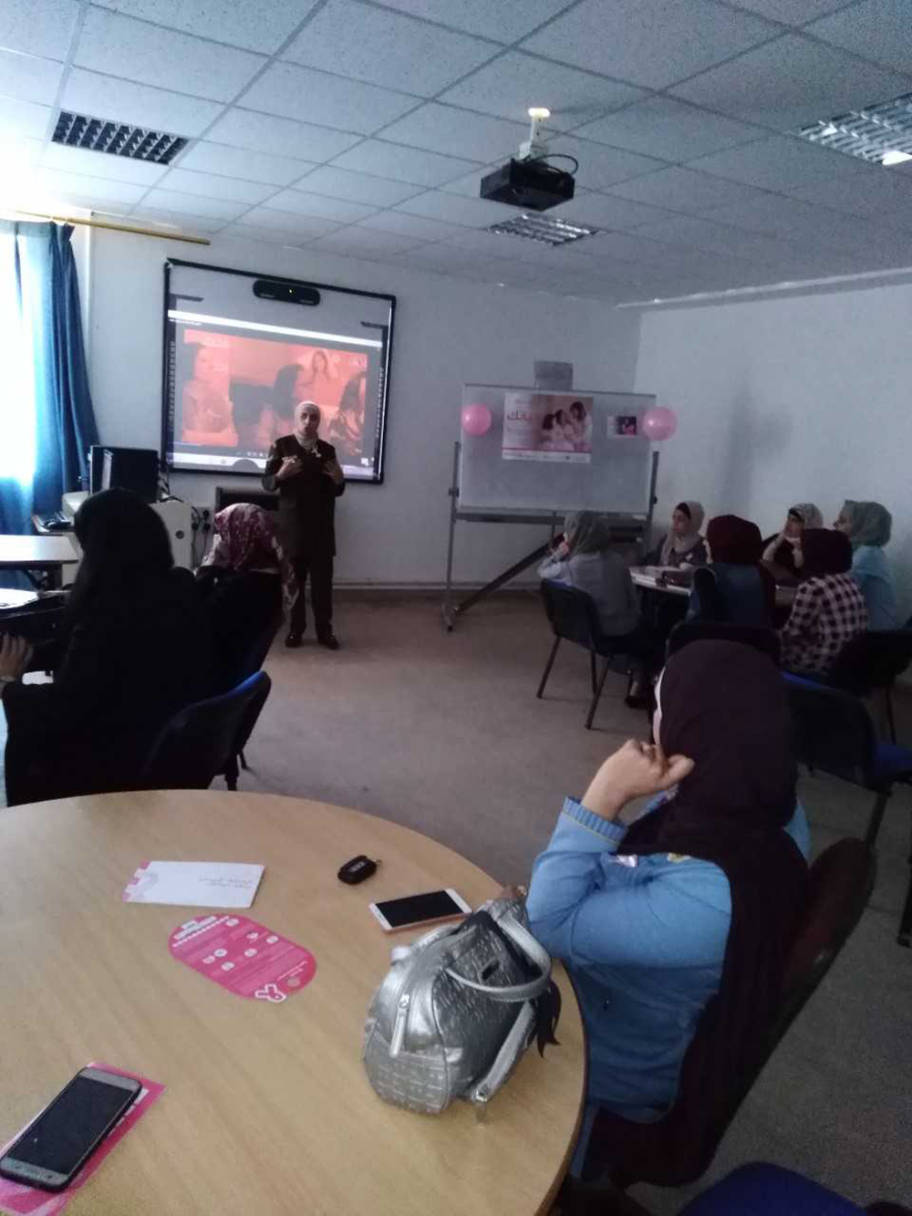 عقدت كلية الشوبك الجامعية محاضرة تثقيفية حول سرطان الثدي، بتنظيم من المركز العسكري في لواء الشوبك، وجاءت هذة المحاضرة ضمن حملة اكتوبر الذي اطلقها مركز الثدي للسرطان بمساعدة مركز الحسين للسرطان ووزارة الصحة بهدف السعي الحثيث والمستمر للتوعية من سرطان الثدي ، الفريق المشارك في المحاضرة قدم شرحا عن سرطان الثدي وأسبابه وأعراضه وطرق العلاج واهمية المراجعة المبكرة لعمل الفحص، وكان الدكتور عمر محاسنه عميد الكلية قد رحب بالمحاضرين باسم إدارة جامعة البلقاء التطبيقية وأسرة كلية الشوبك الجامعية وهم: الدكتور هيثم حسن والممرضات ريم الملاحيم ونسرين العمارات، شاكرا لهم ومقدرا لهم جهودهم المبذولة في نشر الوعي بين السيدات حول سرطان الثدي .