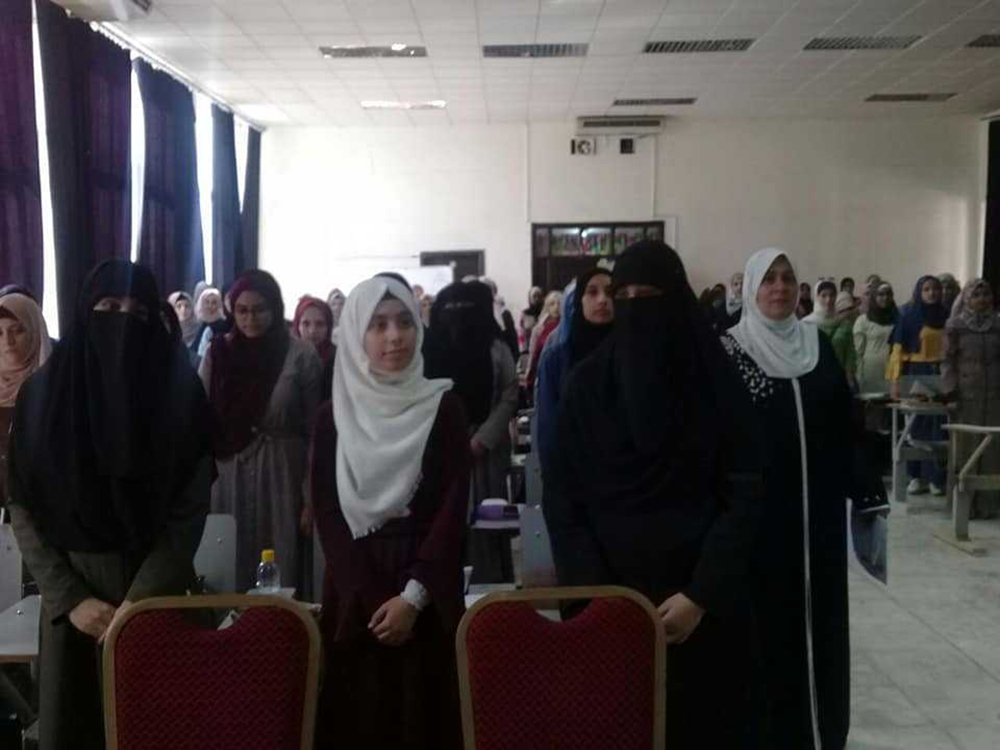 تلاه الدكتور حسان شاهين رئيس قسم علم النفس والتربية الخاصة حيث عرفهن بالتخصصات التابعة للقسم وهي: التربية الخاصة والإرشاد النفسي والتربوي، والدراسات العليا في علم النفس التربوي ،وكما أشار الى مختبر الإرشاد وشجعهن للاستفادة منه والاطلاع على الاختبارات النفسية مثل : اختبارات الذكاء، والشخصية، والإنفعالية حسب الأصول.