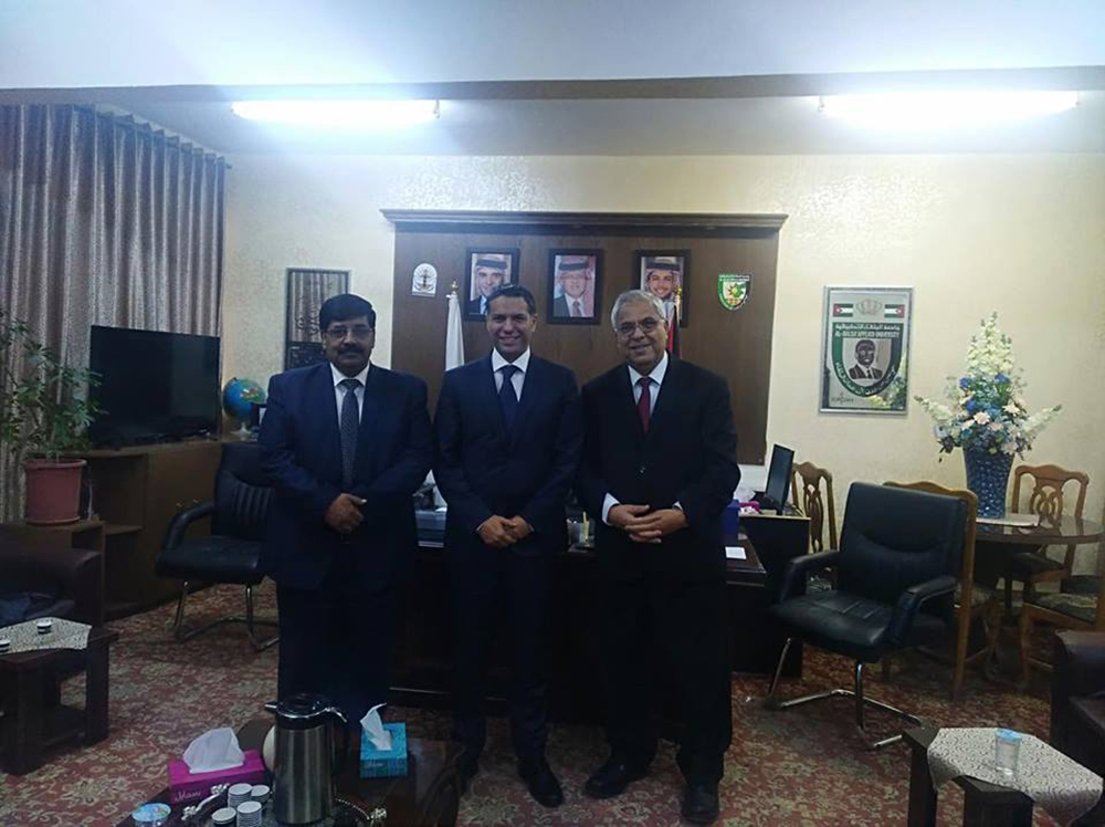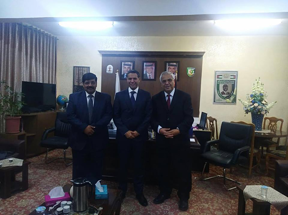 قام المهندس فارس حمودة رئيس غرفة صناعة الزرقاء الاقتصادي الأردني المعروف " مدير عام مجموعة حمودة الأردنية للأعلاف" والتي تضم حوالي "5000" عامل وعاملة يرافقه مساعده السيد سالم العتمة بزيارة إلى كلية اربد الجامعية .