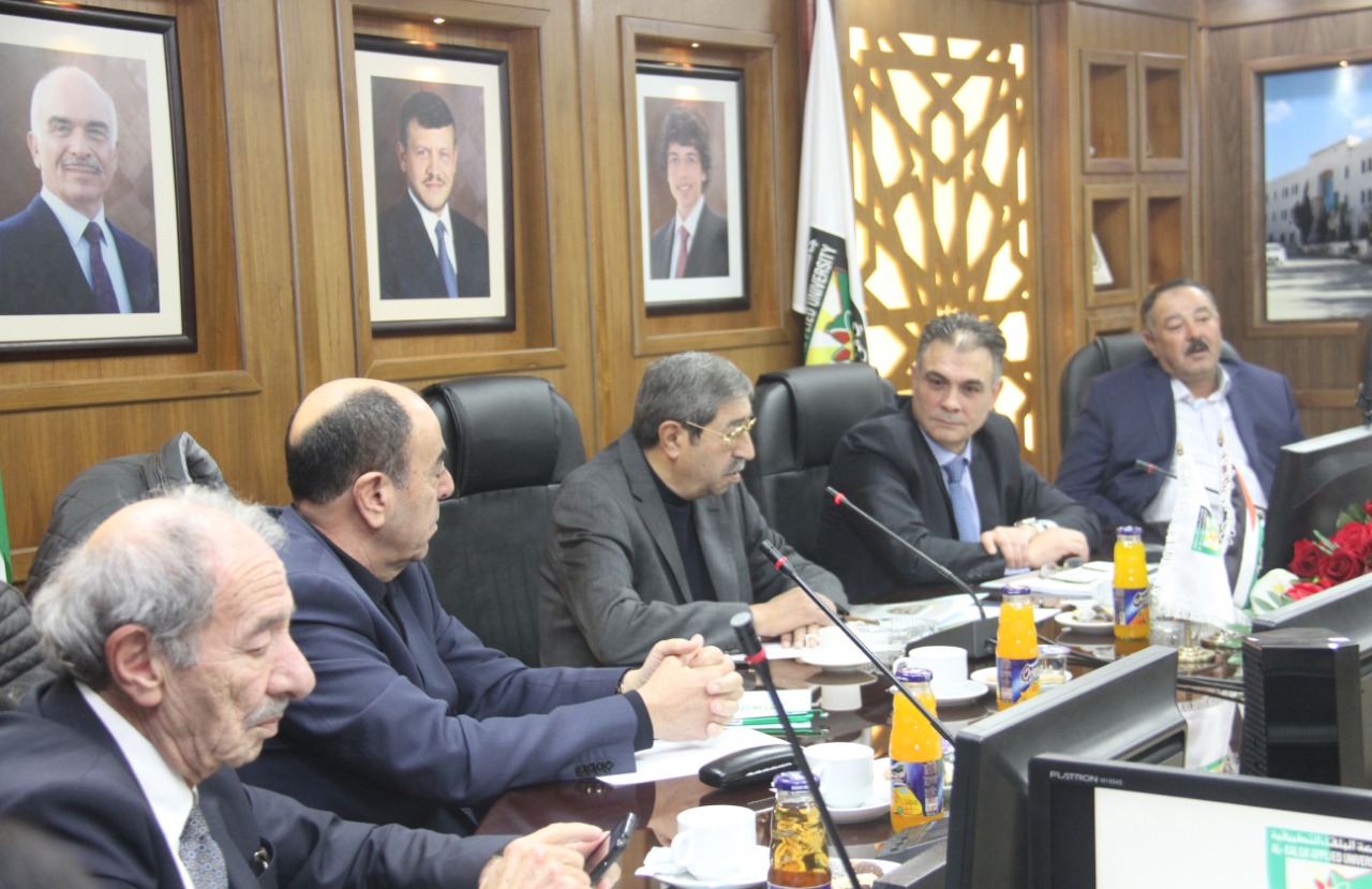 برئاسة معالي العين مروان الحمود وحضور معالي غالب الزعبي ومعالي علي الحياصات ومعالي العين رابحه الدباس ومعالي الدكتور عوني البشير ومعالي المهندس حازم الناصر ومعالي المهندس يوسف الحياصات ومعالي الدكتور وائل عربيات ونواب المحافظة خالد ابو حديثة الحياري و الدكتور علي الحجاحجة ومحمد الزعبي والمهندس جمال قموه والدكتور فوزي الطعيمه وفضية الديات ومعتز ابو رمان ورئيس بلدية السلط الكبرى المهندس خالد الخشمان، وبحضور نواب رئيس الجامعة وبدأ العين الحمود الحديث بشكره لإدارة وأسرة الجامعة ممثلة برئيسها الدكتور عبداله الزعبي الذي يحرص على عقد هذه اللقاءات الدورية لايمانه بشراكة ومسؤولية الجامعة والمجتمع المحلي تجاه بعضهما البعض ونحن فخورين ونحن نرى التطور ماثلا امام اعيننا في كافة المجالات سواء الاكاديمية والادارية او البحث العلمي وخدمة المجتمع والتطورات الحاصلة في البنية التحتية ونقل التكنولوجيا وتحديث المشاغل والمختبرات مشيرا الى خصوصية هذه الجامعة الغالية على قلب كل اردني لانتشارها على ارض الوطن كافة من شماله الى جنوبه.ونأمل ان تشهد الجامعة مزيدا التقدم والازدهار الأمر الذي ينعكس على مجتمعها المحلي بصور عدة ، كما نأمل ان تكون كلية الطب في الجامعة من الروافع لمحافظة البلقاء وان تقدم الخدمة الطبية المتميزة لابناء المحافظة من خلال مستشفى السلط الجديد والذي يضم في حرمه مبنى لكلية الطب السريري، مشيرا الى الانجازات الكبيرة والقفزات النوعية التي تحققت في جامعة البلقاء منذ عامين وتعافيها من ازمتها المالية والادارية شيئا فشيئا والتطور الكبير في البنية التحتية والمباني والمختبرات سواء في مركز الجامعة او في الكليات التابعة لها تعتبر محط فخر واعتزاز رئيس الجامعة الدكتور عبدالله الزعبي رحب بمعالي العين الحمود وبقيادات محافظة البلقاء من أعيان ونواب ووزراء سابقين في رحاب الجامعة وقدم شرحا موثقا عن الانجازات التي تمت في الجامعة منذ عامين ونصف سواء على المستوى الأكاديمي او الإداري والمالي او البحث العلمي او الطلبة او المجتمع المحلي ، مشيرا ان الجامعة كانت تنطلق في قراراتها كافة من منظومة القوانين والأنظمة والتشريعات المعمول بها في الجامعة والاوراق النقاشية لجلالة الملك عبدالله الثاني والإستراتيجية الوطنية لتنمية الموارد البشرية ، ووضعت نصب عينها تنفيذ الرؤى الملكية في تطوير التعليم العالي واعادة الالق اليه وتطوير التعليم المهني والتقني بشكل خاص وتنفيذ كافة بنود الاستراتيجية الوطنية لتنمية الموارد البشرية لتحقيق اهدافها. .