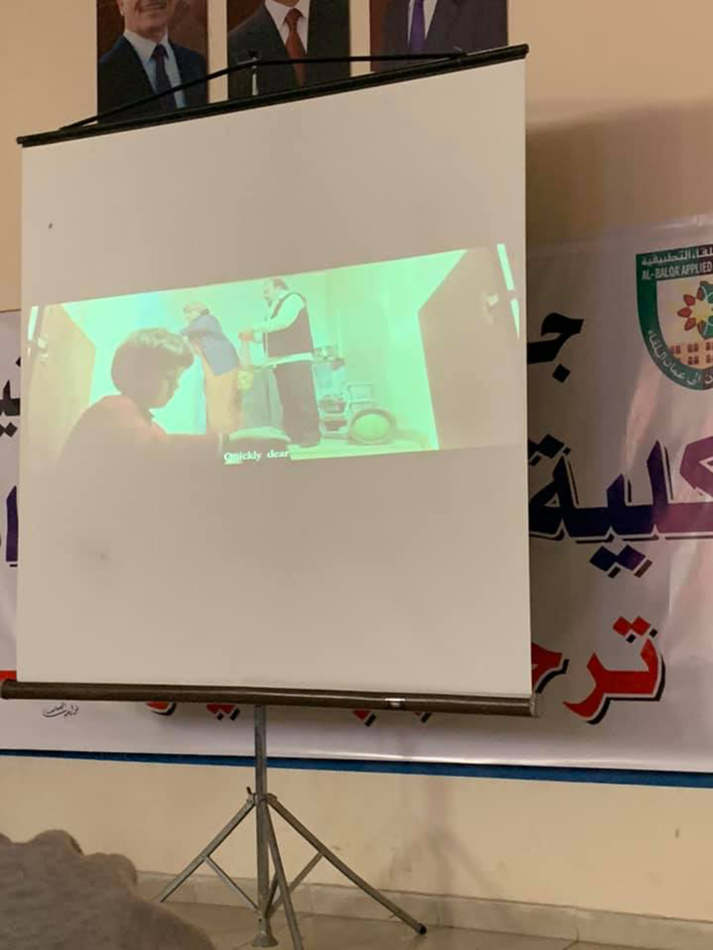 دعما لحملة فلنشعل قناديل صموده وبحضور الدكتور منذر كريشان عميد كلية الزرقاء الجامعية تم عرض فيلم"معطف كبير الحجم" والذي يتناول الواقع الفلسطيني والظروف التي مرت على القضية الفلسطينية منذ عام 1987.
