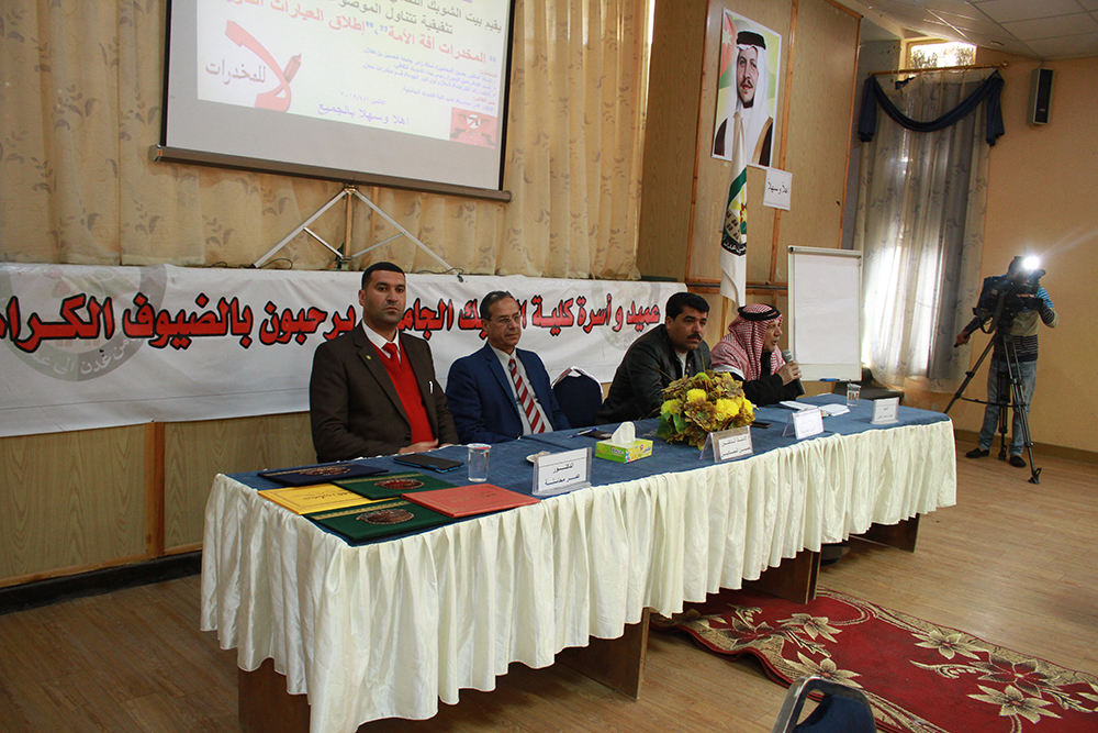 وكان عميد الكلية الدكتور عمر محاسنة ألقى في بداية المحاضرة ، والتي حضرها وجهاء المنطقة، كلمة أكد فيها أهمية تثقيف المجتمع بهذه المواضيع لتحصين أفراده.