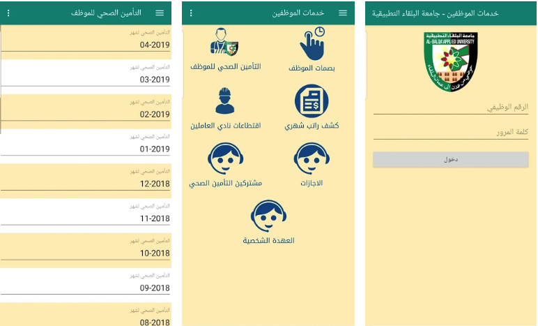 نود إعلامكم بقيام مركز الحاسوب بإطلاق تطبيق خدمات موظفي جامعة البلقاء التطبيقية للتسهيل على الموظفين امكانية الوصول الى المعلومات الخاصة بهم مثل: