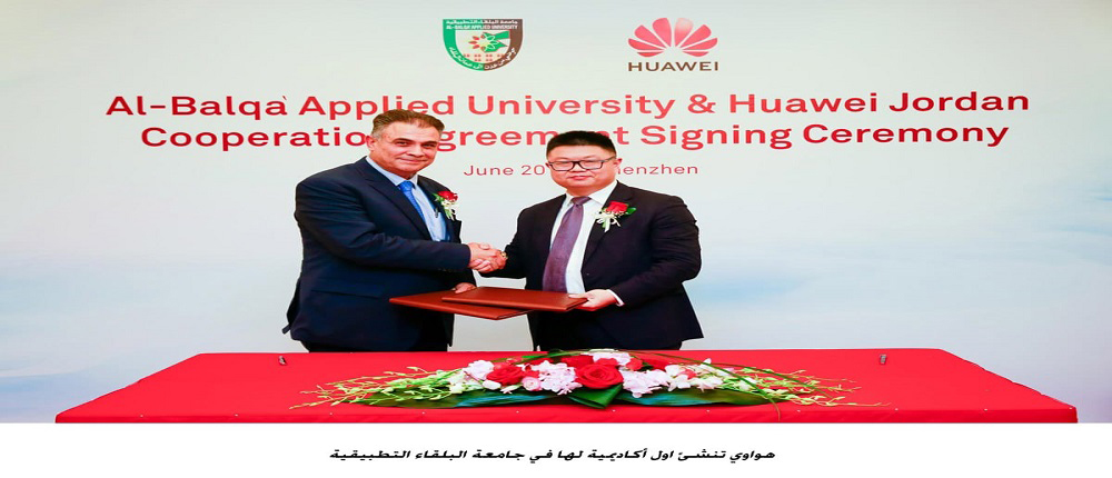وقعت جامعة البلقاء التطبيقية وشركة هواوي الأردن اتفاقية لتأسيس أول أكاديمية للاتصالات وتكنولوجيا المعلومات، ضمن مجموعة اكاديميات سيتم انشاؤها في الجامعات الرسمية بالمملكة، لتدريب طلاب هذه التخصصات على أحدث التكنولوجيا التي تطبقها هواوي في مختلف أنحاء العالم.