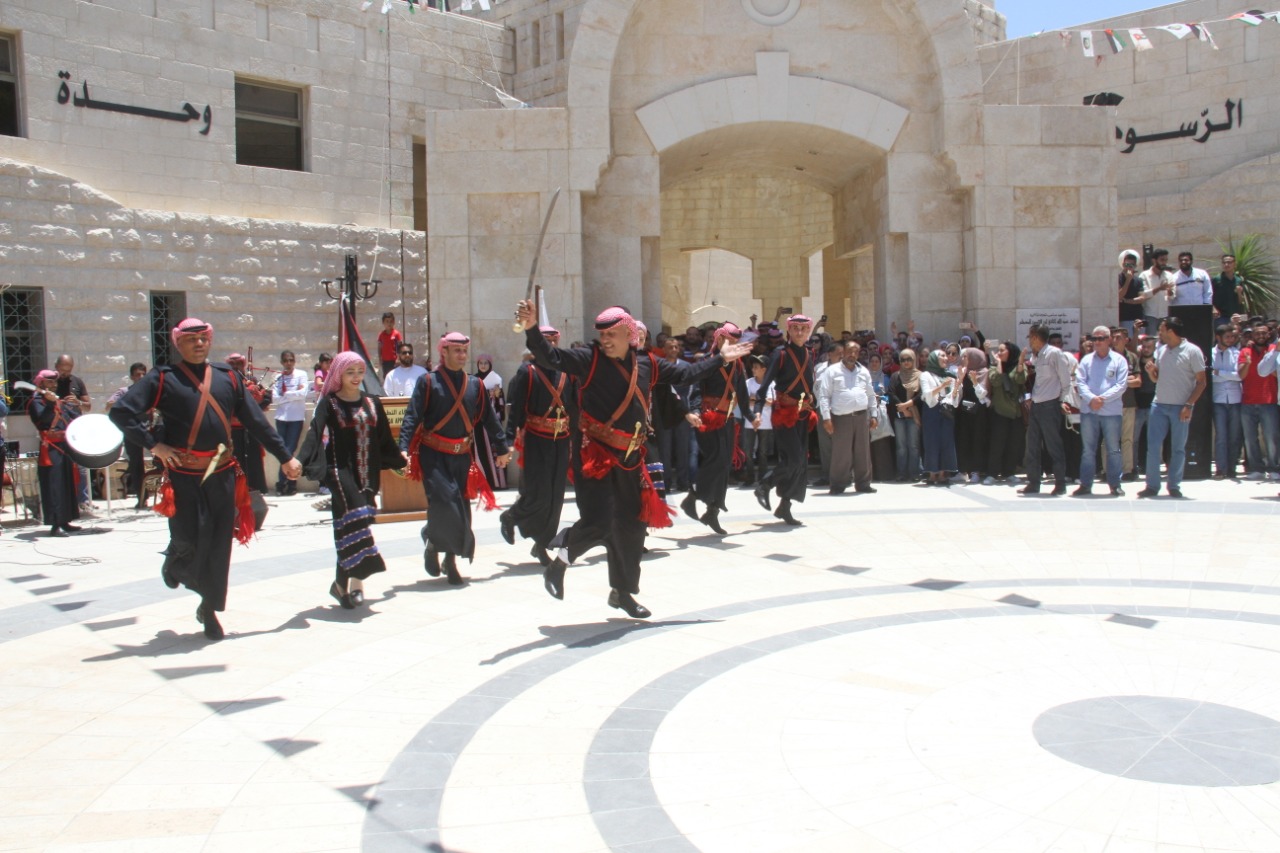 مندوبا عن رئيس جامعة البلقاء التطبيقية الاستاذ الدكتور عبدالله سرور الزعبي رعى نائب رئيس الجامعة للشؤون الادارية الاستاذ الدكتور جمال النسور الاحتفال الفني الذي نظمته عمادة شؤون الطلبة بمناسبة العيد العشرين لتولي جلالة الملك عبدالله الثاني ابن الحسين سلطاته الدستورية وأقيمت فعالياته على مدرج المكتبة المركزية في مركز الجامعة . عميد شؤون الطلبة الدكتور فادي سماوي قال خلال كلمه له في الاحتفال : ها نحن نتنسم عبق وشذى مناسبة لا اغلى ولا اجمل منها ألا وهي العيد العشرين للجلوس الملكي وتسلم جلالة الملك عبدالله الثاني ابن الحسين المعظم حفظه الله ورعاه سلطاته الدستورية. وأكد الدكتور سماوي اننا كأردنيين وفي العيد العشرين للجلوس الملكي نفتخر بالتطور الحاصل في جميع القطاعات العسكرية والاقتصادية والاجتماعية والتعليمية وتعد رسالة عمان والأوراق النقاشية لجلاله الملك هي نبراس هداية نحو التطور والرقي فغدا الاردن واحة امن واستقرار ، وأضاف الدكتور عميد شؤون الطلبة اننا مطالبين بالمحافظة على المنجز الوطني الذي بناه الاباء والأجداد والدفاع عنه بالمهج والأرواح والتسلح بالعلم والمعرفة لبناء اردن المستقبل . وتضمنت فعاليات الاحتفال الذي حضره عدد من عمداء الكليات ومدراء الدوائر وطلبة الجامعة مشاركة مميزة من فرقة امانة عمان الكبرى حيث قدمت عروض للدبكة الأردنية ، والرقصات الفلكلورية التراثية والأغاني الوطنية التي تتغنى بالقائد والوطن كما تضمن برنامج الاحتفال فقرة فنية لفرقة السلط للفنون الشعبية قدمت من خلالها لوحات فنية من الفلكلور الشعبي والدبكة ، واختتمت فعاليات الاحتفال بمشاركة فنية مميزة للفنان الاردني ماجد زريقات والذي يتميز بفنه الوطني الشعبي والتي يتغنى فيه بقائد الوطن والجيش العربي حيث قدم مجموعة من اغانيه الوطنية. وفي ختام الاحتفال قدم مندوب رئيس الجامعة الاستاذ الدكتور جمال النسور درع الجامعة للفنان زريقات ولفرقة امانة عمان وفرقة السلط الشعبية تقديرا لمشاركتهم المميزة في فعاليات الحفل الفني .