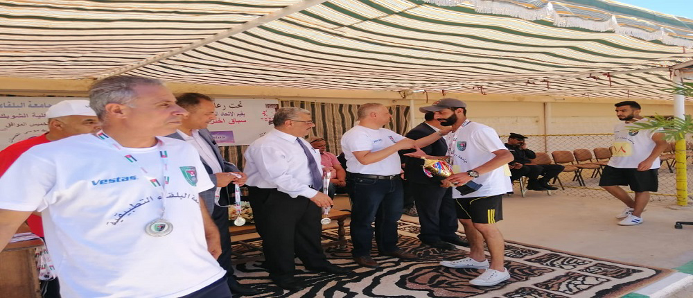 مندوبا عن الاستاذ الدكتور عبدالله سرور الزعبي رئيس جامعة البلقاء التطبيقية توج الدكتور فادي سماوي عميد شؤون الطلبة رئيس الاتحاد الرياضي للكليات الجامعية والجامعية المتوسطة فريق كلية الكرك الجامعية بطلا لسباق ضاحية الكليات الجامعية على مستوى الفرق وفريق كلية الاميرة رحمة الجامعية على المستوى الفردي ضمن بطولة الاتحاد الرياضي للكليات الجامعية والجامعية المتوسطة والذي جرى في كلية الشوبك الجامعية بمشاركة عشرة فرق من كليات حكومية وخاصة وعسكريه.