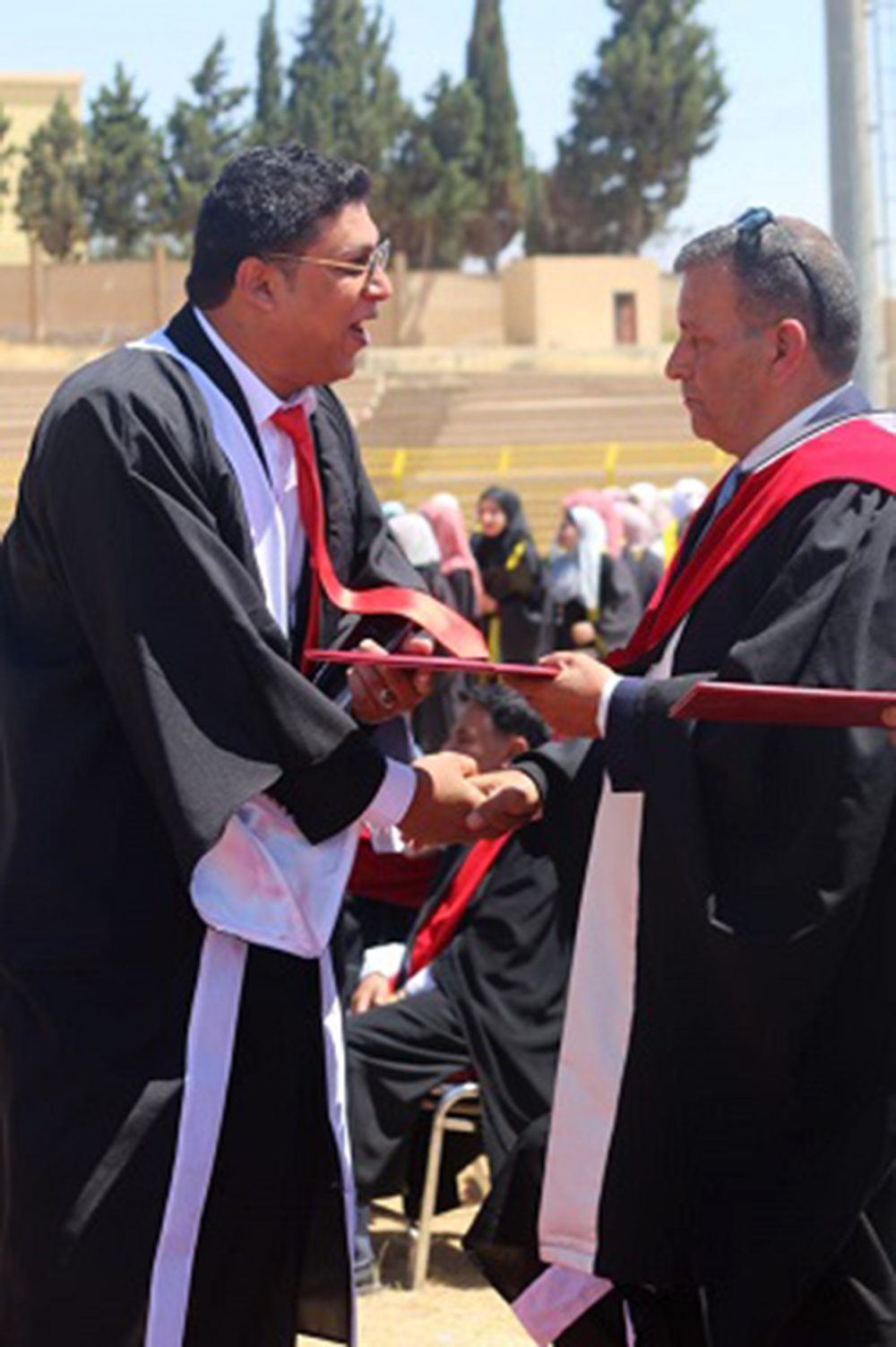 وهنأ عميد الكلية الطلبة الخريجين وذويهم، مشيداً بما بذله أعضاء الهيئة التدريسية بالكلية من جهودٍ لتمكين الطلبة من المعرفة التي حازوا إثرها الدرجات العلمية التي يستحقونها.