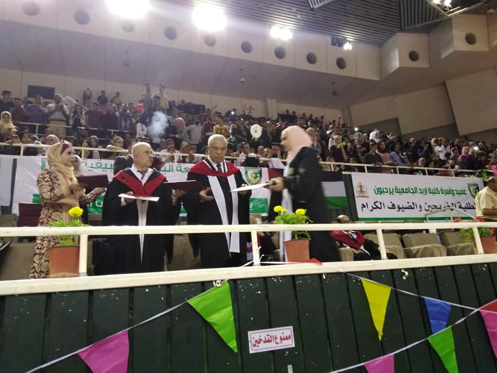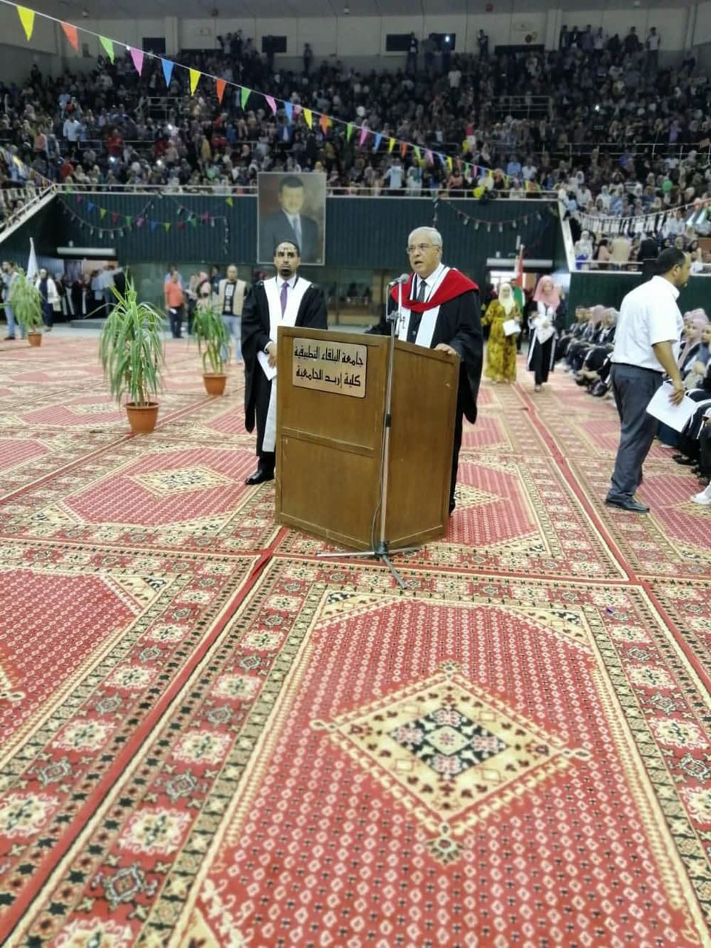 مندوباً عن رئيس جامعة البلقاء التطبيقية أ. د عبدالله سرور الزعبي، رعى عميد كلية اربد الجامعية أ. د. مصطفى عيروط حفل تخريج طلبة الكلية الفوج الخامس عشر لطلبة الكلية لمستوى البكالوريوس ، والفوج الاربعين لمستوى الشهادة الجامعية المتوسطة وذلك في قاعة مدينة الحسن الرياضية بمحافظة اربد بمشاركة رؤساء الاقسام التعليمية وبحضورعميد شؤون الطلبة الدكتور فادي سماوي واعضاء الهيئتين التدريسية والإدارية في الكلية .