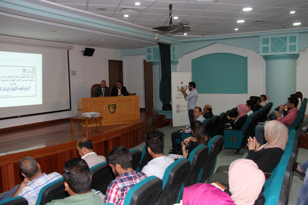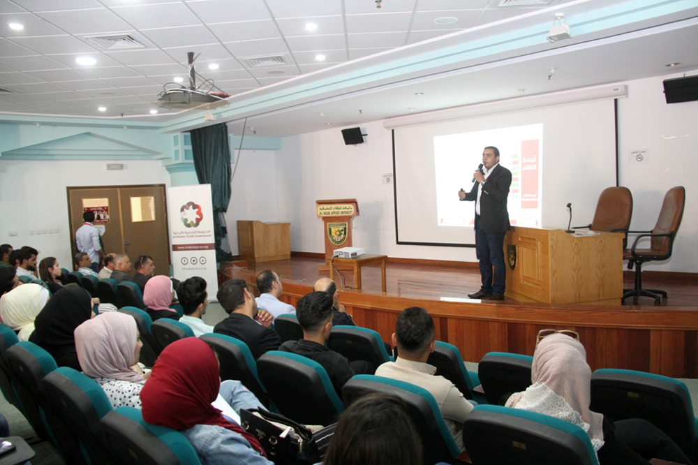نظمت عمادة شؤوون الطلبة في جامعة البلقاء التطبيقية وبالتعاون مع وزارة الشباب لقاءا تعريفيا حول برنامج الحكومة الشبابية والبرلمان الشبابي بحضور الدكتور فادي سماوي عميد شؤون الطلبة والاستاذ احمد ابو شيخه المدير العام لبرنامج الحكومة الشبابية والمهندس اياد معادات مدير المعهد السياسي لاعداد القيادات الشبابية في وزارة الشباب وطلبة ممثلين عن كليات الجامعة في اقليم الوسط.