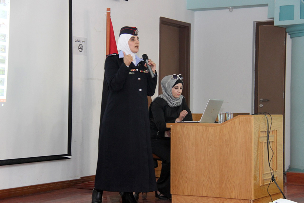 وتحدثت المهندسة الكيميائية النقيب عبله الزعبي من الادارة الملكية لحماية البيئة عن المهام والواجبات المناطة بالادارة ، مشيرة الى انها تأسست في العام 2006 وتعد من احد الدوائر الرئيسية التابعة الى جهاز الامن العام ولها فروع في كافة محافظات المملكة .