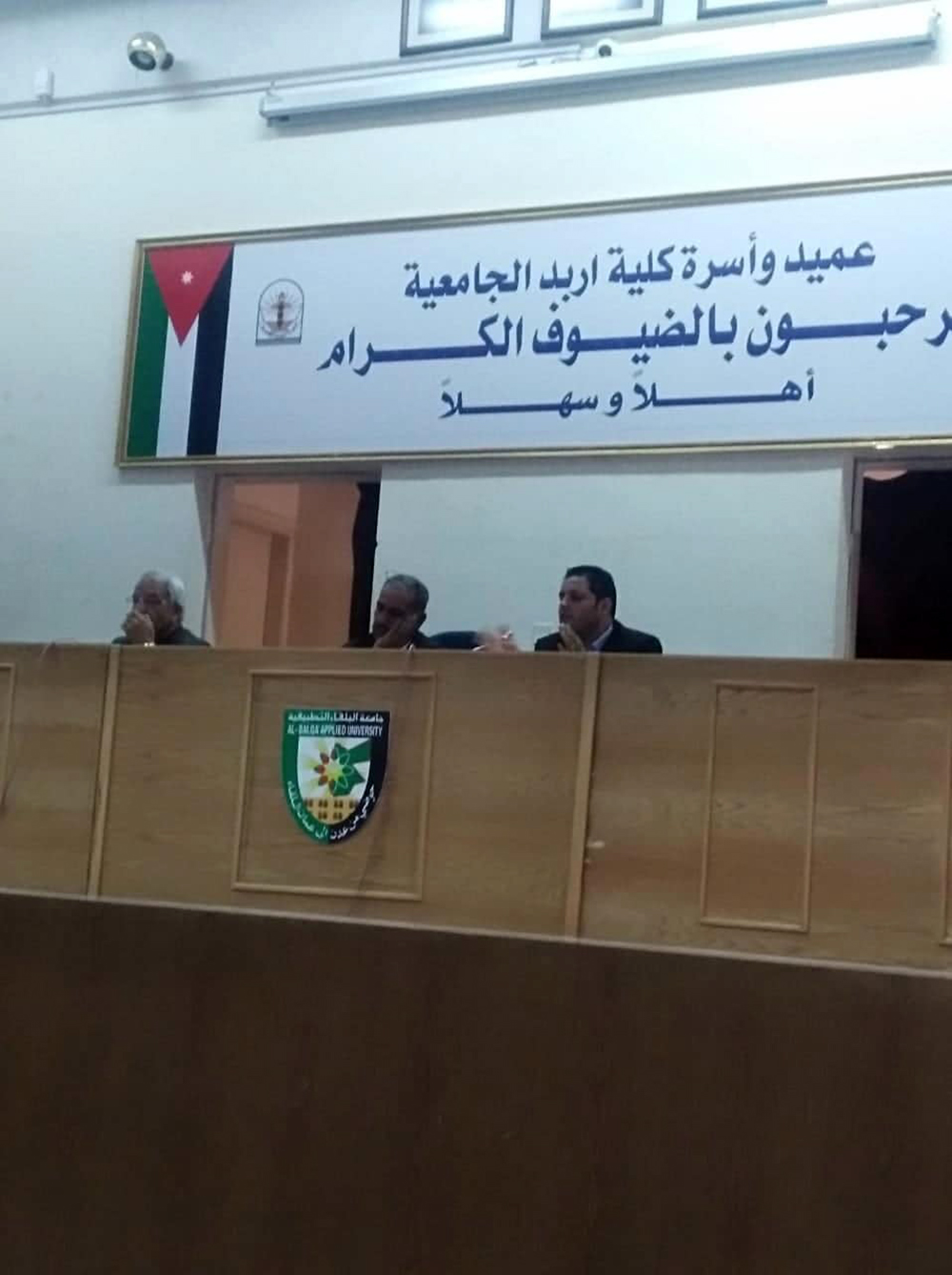 نظمت كلية اربد الجامعية محاضرة عن "دور مؤسسة الإقراض الزراعي في التشغيل وإقامة المشاريع الصغيرة والمتوسطة خاصة للشباب تحدث فيها مدير الإقراض الزراعي فرع اربد السيد عبد الله الغزاوي والمهندس علاء الشطناوي بحضور نائب العميد الدكتور تيسير اندراوس وعدد من أعضاء الهيئتين التدريسية والإدارية والطلبة.