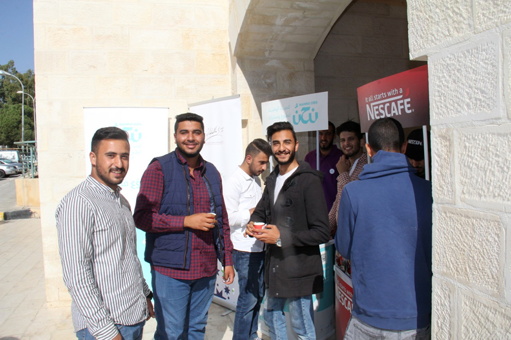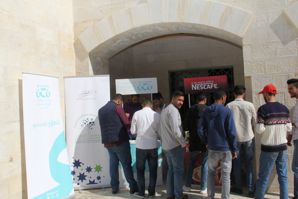 الحملة التي انطلقت بالتعاون بين مؤسسة ولي العهد مبادرة نوى / منصة نحن وعمادة شؤون الطلبة / مكتب الارشاد الوظيفي ومتابعة الخريجين وتستمر من 3-13/11/2019 تهدف الى تفعيل دور الشباب في خدمة المجتمع و تعزيز مشاركة الشباب الأردني في الاعمال التطوعية من خلال تسهيل وصولهم للفرص التطوعية المتاحة والمناسبة لاهتماماتهم وميولهم ، وذلك لما له من أثر كبير على بناء قدرات الشباب وإحداث التغير الإيجابي في المجتمع والعمل التطوعي يكسب الشباب مهارات جديدة ويزيد من خبراتهم الشخصية والعملية.