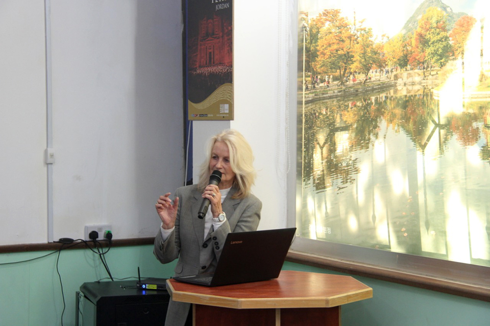 وقدمت السيدة غابريلا فريكس عرضا عن المنح والفرص المقدمة من الداد وخاصة المنح المقدمة لطلبة الدراسات العليا والفرص البحثية لأعضاء الهيئة التدريسية ،بالإضافة الى شروط تقديم الطلبات وغيرها من الاجراءات التي عرضتها فريكس والتي تمكن اعضاء الهيئة التدريسية وطلبة الدراسات العليا من الاستفادة من الخدمات التعليمية.