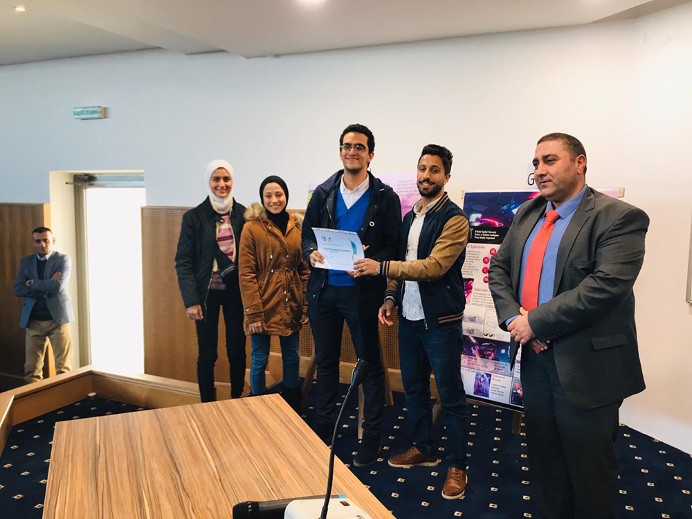 وفي الختام المسابقة سلم الأستاذ الدكتور إبراهيم تادرس عميد كلية الذكاء الاصطناعي   الجوائز على الفائزين في المسابقة حيث فاز كل من  الطلبة  عبدالكريم اللدو وامجد ابو السندس ودانا البجق وزيد عجارمه وياسمين خليل وباسل الأغا  لأفضل محتوى، فيما فز كل من الطلبة انس السعود وأريج خريسات وتولولين ابو ورده ومحمود بلوط وامين اللحام  لأفضل  تصميم.