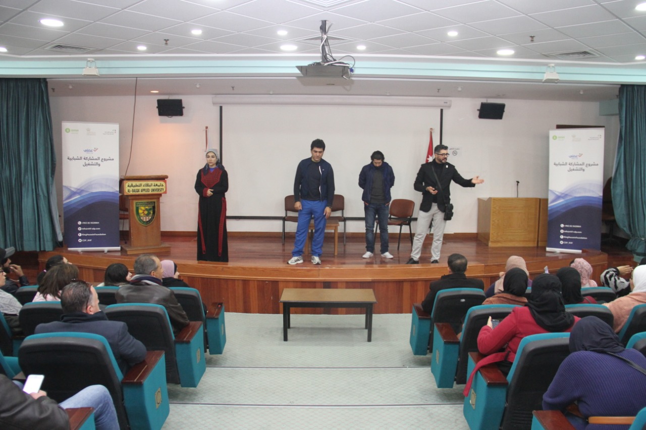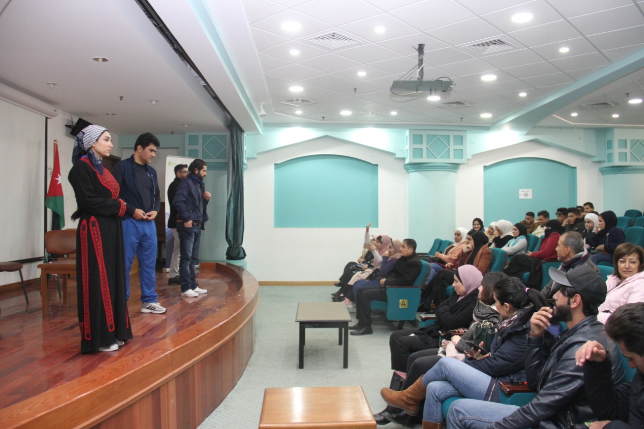 العرض المسرحي التفاعلي والذي يأتي في اطار تنفيذ مشروع المشاركة الشبابية والتشغيل / ايام الريادة ، قدم فيه فريق المركز الوطني المسرحي التابع لمؤسسة الملك حسين عرضا مسرحي يدعو ويحث الشباب لاستغلال المهارات والمواهب التي يمتلكوها في خلق فرص عمل ( التشغيل الذاتي ) حيث شهد العرض تفاعل كبير من طلبة الجامعة