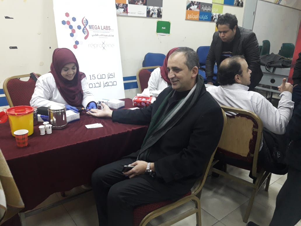 بمناسبة عيد ميلاد جلالة الملك عبدالله الثاني ابن الحسين المعظم نظمت وحدة التنمية وخدمة المجتمع المحلي في جامعة البلقاء التطبيقية بالتعاون مع مختبرات ميجا لاب ومركز الشامي للعيون وصيدلية استر اورانج يوما طبيا مجانيا في كلية الزرقاء الجامعية بحضور الدكتور خالد الزعبي مساعد رئيس الجامعة لشؤون خدمة المجتمع المحلي مدير وحدة التنمية وخدمة المجتمع المحلي وعميد كلية الزرقاء الجامعية الدكتور يحي القضاه.