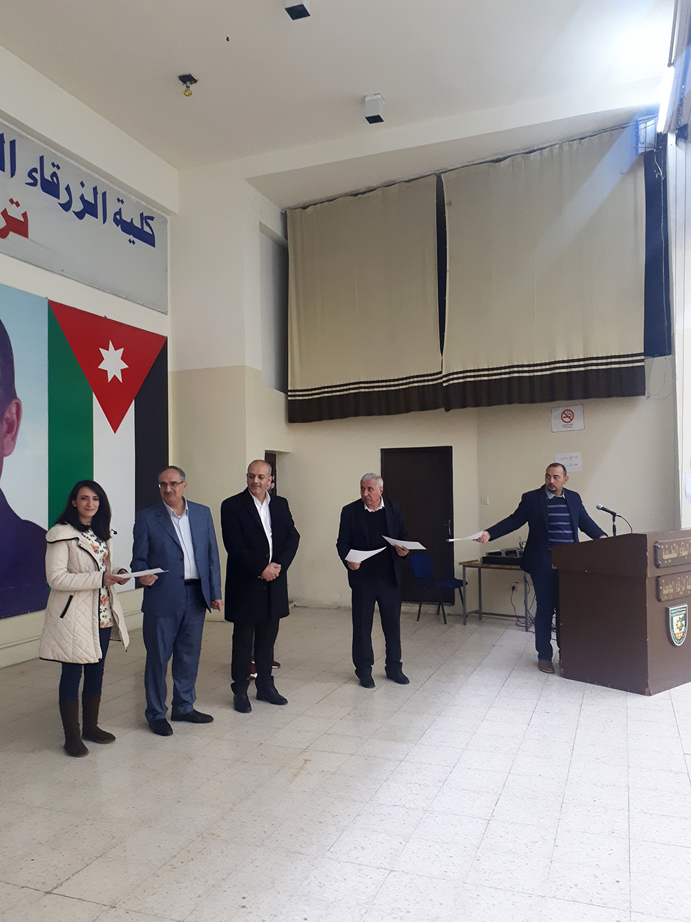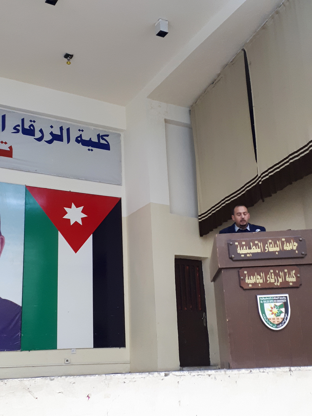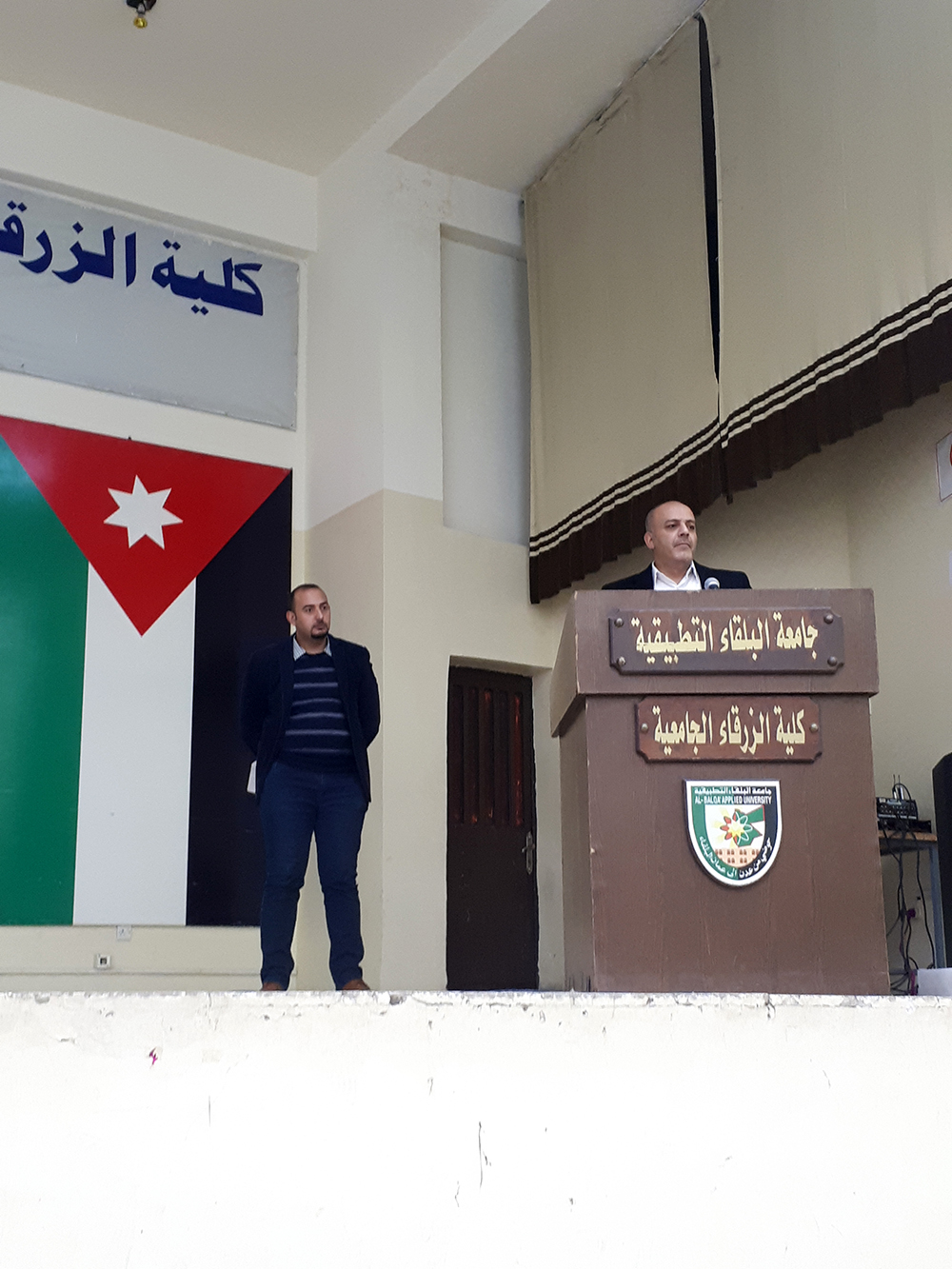 وخلال الحفل القى عميد الكلية كلمة قال فيها : يسرني أن أكون معكم لأشهد انجازاً جديداً من انجازات جامعة البلقاء التطبيقية وفي كلية الزرقاء الجامعية و بالتشاركية مع مؤسسة إنجاز.