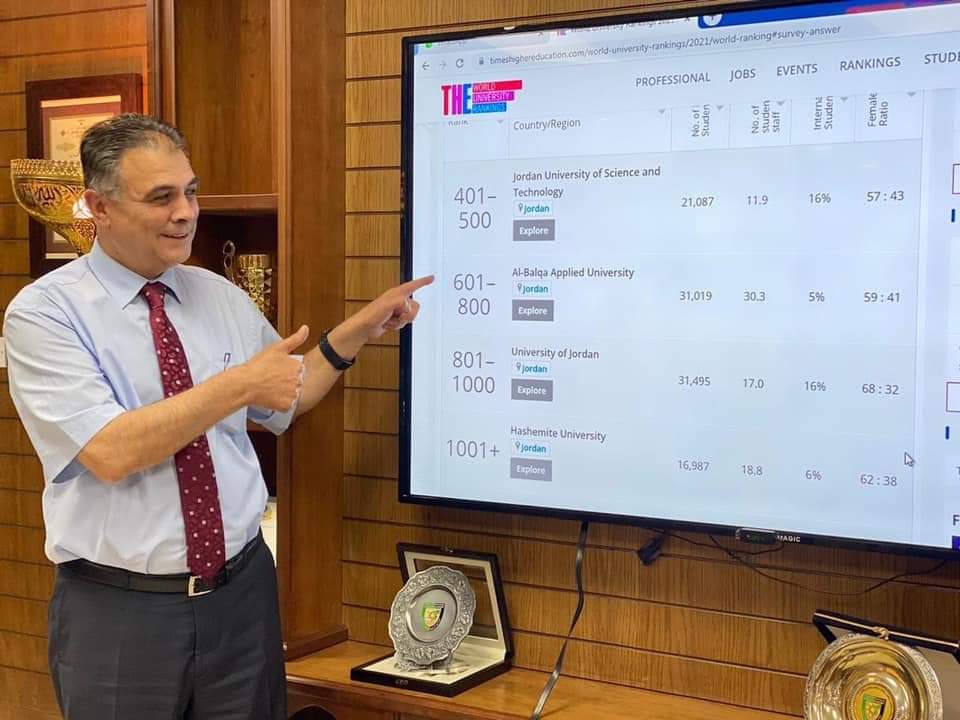 فى كل مناسبة، وكل اطلالة اعلامية للرئيس يصر على ان البلقاء تقدم اداء متميزا على كافة المستويات، وان ما تحققه الجامعة من انجازات امر طبيعي ومتوقع مع وجود رؤى واضحة، وفريق مستعد للعمل، فاستخف البعض بهذا الرأي بحجة ان الجامعة ما تزال فى بداياتها مقارنة بالجامعات "الاطول عمراً" أو التي فيها من الاساتذة ما يفوق جامعة البلقاء "عدداً"، حتى لا يعترفوا بحقيقة ان مستوى جامعة البلقاء قد نما وتطور بشكل سريع وان ما تحققه من انجازات، وتطرحه من افكار ومشاريع فاق التوقعات، وان ما كان ينقص البلقاء هو اعتراف عالمي كتحقيق مواقع متقدمة على تصنيف التايمز العالمي..