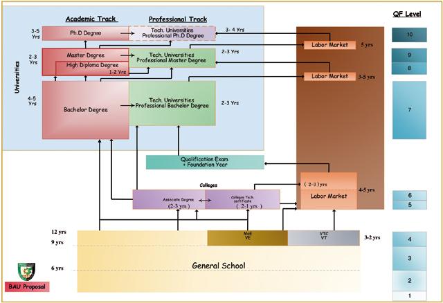 Those who don’t meet academic track admission requirements, regardless of their high school stream, can either join the labour force, or enroll in university college programmes. Upon graduation, they can join the labour force, bridge into the academic track as per the current regulations, or join the professional track.