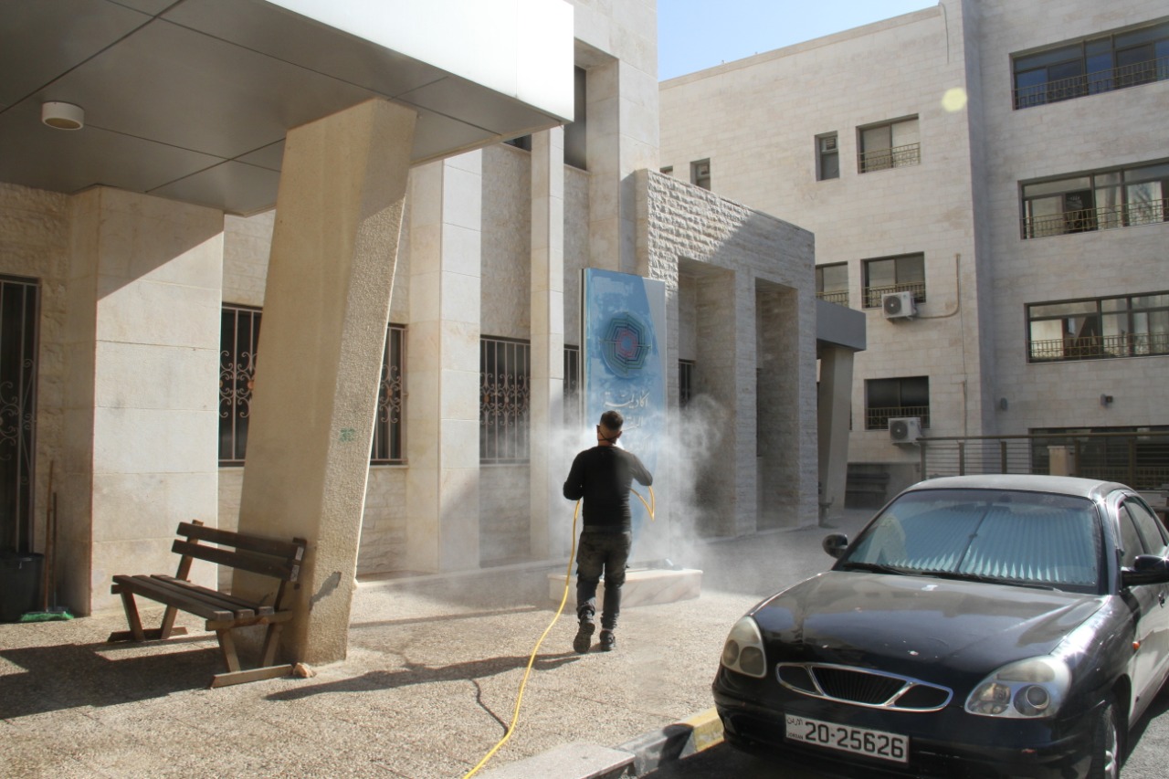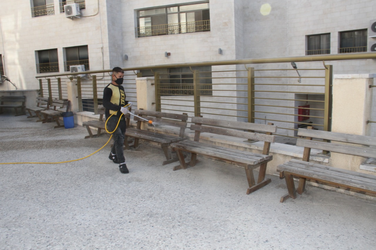 نفذت كوادر وحدة الخدمات العامة اليوم في جامعة البلقاء التطبيقية حملة تعقيم لعدد من مرافق الجامعة وذلك في اطار الاجراءات الوقائية التي تقوم بها الجامعة والمتعلقة بمكافحة انتشار فيروس كورونا .