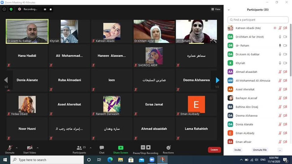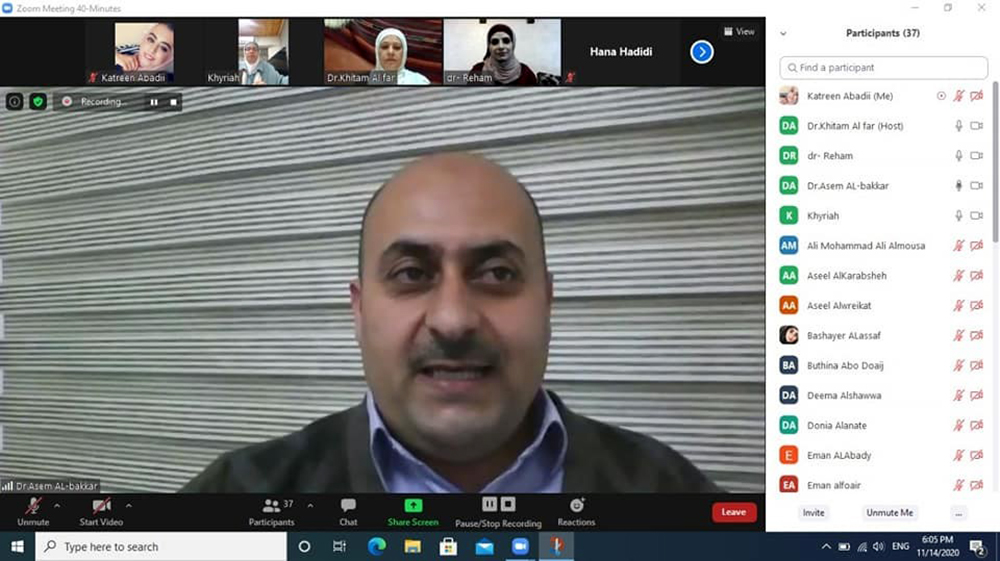 عقد قسم الخدمة الاجتماعية وقسم التدريب الميداني في الكلية، بإشراف الدكتور عاصم البكار والدكتورة رهام السعايدة يوم السبت الموافق 14/11/2020