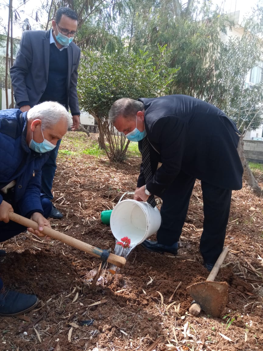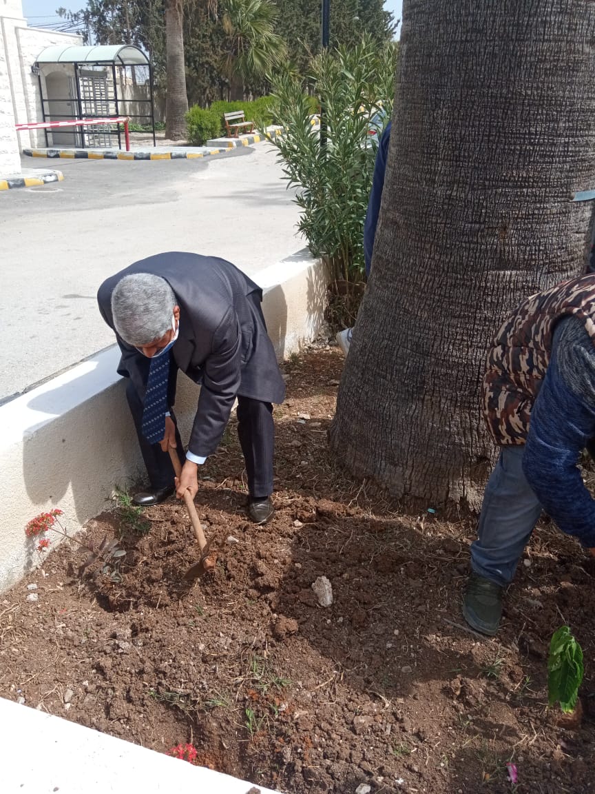 حيث افتتح الاستاذ الدكتور زكريا القضاة عميد الكلية هذه الفعالية بزراعة عدد من الاشجار والزهور في حرم الكلية بمشاركة عدد من أعضاء الهيئتين التدريسية والإدارية وضمن الالتزام بقواعد وشروط السلامة العامة .