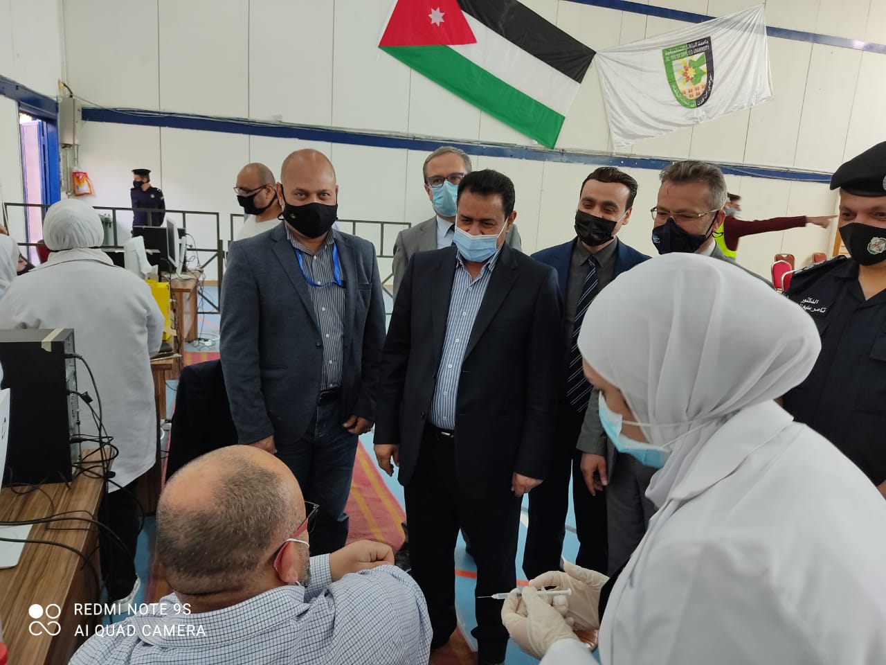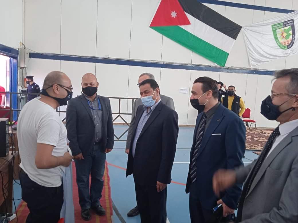 تفقد صباح اليوم عطوفة محافظ البلقاء نايف الهدايات مركز تطعيم كورونا في جامعة البلقاء التطبيقية يرافقه مدير شرطة البلقاء العميد تامر المعايطة ومدير الشؤون الصحية في البلقاء الدكتور خالد عبدالفتاح وبحضور نائب رئيس جامعة البلقاء التطبيقية الاستاذ الدكتور غاندي انفوقه ومساعد امين عام وزارة الصحة الدكتور عدنان اسحق،حيث اشاد الهدايات بالتنظيم الكبير لمركز التطعيم وعملية دخول وخروج المواطنين للمركز وتلقي المطعوم بكل يسر وسهولة،واكد الهدايات اهمية اقبال المواطنين على التسجيل لتلقي المطعوم للحفاظ على سلامتهم وسلامة المجتمع الاردني مطالبا متلقي المطعوم بضرورة تشجيع اقاربهم واصدقائهم على التسجيل لتلقي المطعوم.