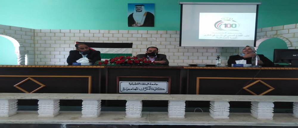 تحت رعاية عميد كلية الكرك الجامعية الاستاذ الدكتور محمد نايف الصرايره عقدت كلية الكرك الجامعية ندوة بمناسبة الاحتفال بمئوية الدولة الأردنية واختصت هذه الندوة بالحديث عن الواقع الصحي وتطوره عبر المئوية الاولى من عمر الدولة الأردنية وكيف أن المئوية شهدت تطورات صحية عظيمة منذ بداية نشأة الدولة الأردنية