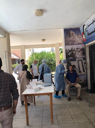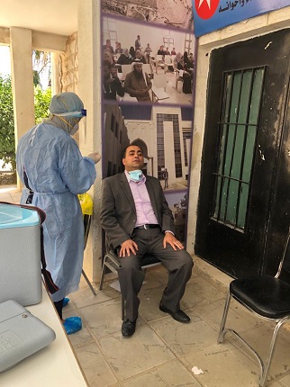 حيث تم أخذ مسحات من الموظفين إضافة إلى تقديم النصائح والإرشادات الصحية للوقاية من الفيروس .