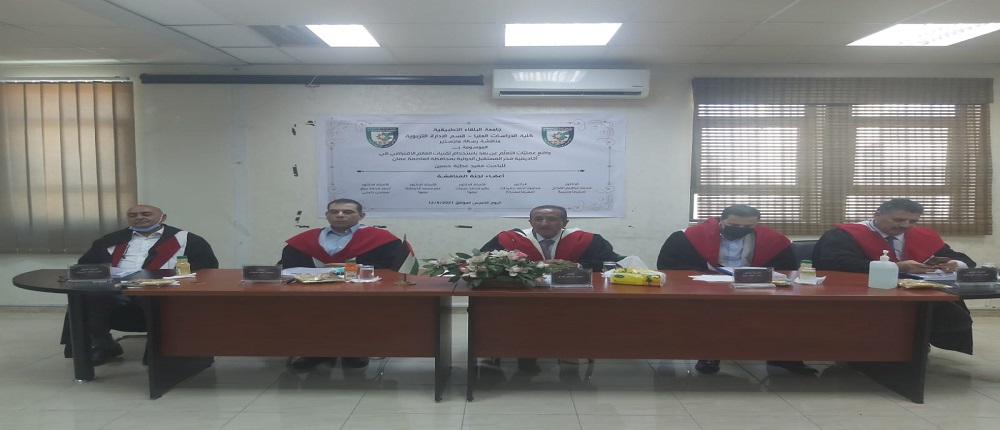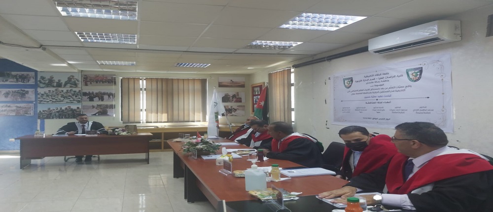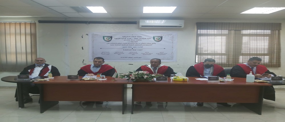 تم في مساء يوم الخميس الموافق 12/8/2021  ، مناقشة رسالة ماجستير للطالب مفيد عطية لطفي حسين تخصص الإدارة التربوية ،  قسم العلوم التربوية  بعنوان ( واقع عمليات التعلم عن بعد باستخدام تقنيات العالم الافتراضي في أكاديمية فخر المستقبل الدولية بمحافظة العاصمة عمان)