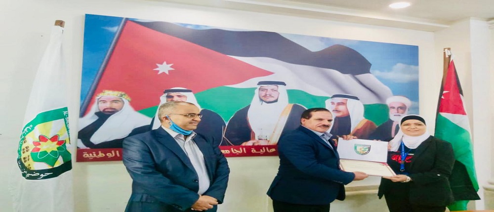 انسجامًا مع توجهات إدارة الجامعة ممثلة برئيسها الأستاذ الدكتور عبدالله سرور الزعبي في تحسين الأداء والتطوير وتحفيز قيم التنافس البنّاء في العمل لدى الموظفين قام الأستاذ الدكتور ناجي السعايدة عميد كلية الأميرة عالية الجامعية بتسليم شهادة الموظف المثالي عن شهر تموز2021 للموظفة أسماء العواملة رئيس قسم الجودة الشاملة.