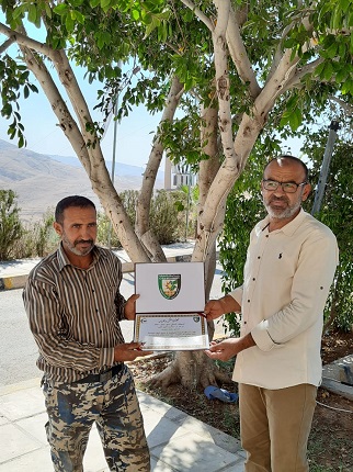 شهادة الموظف المثالي عن شهر اب وأيلول للموظفين الحمادين والفقير من محطة الاميرة تسنيم بنت غازي للبحوث الزراعية