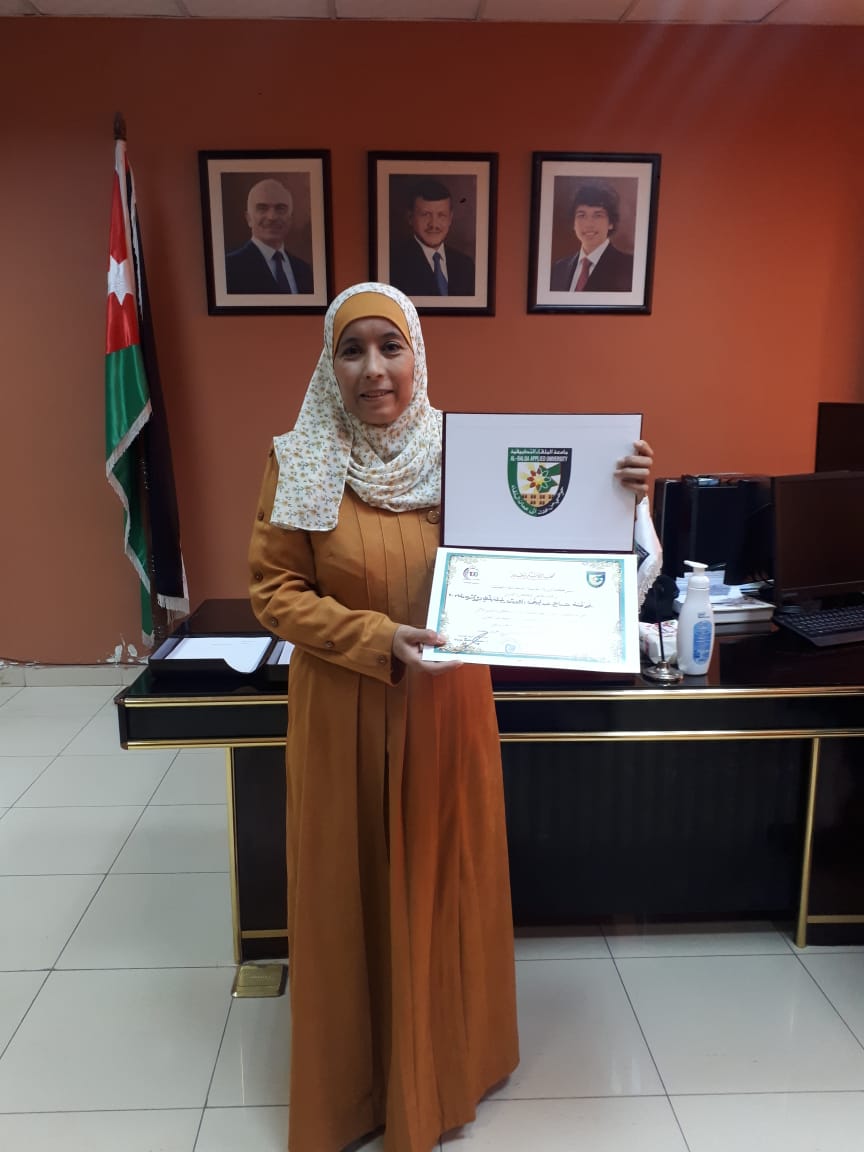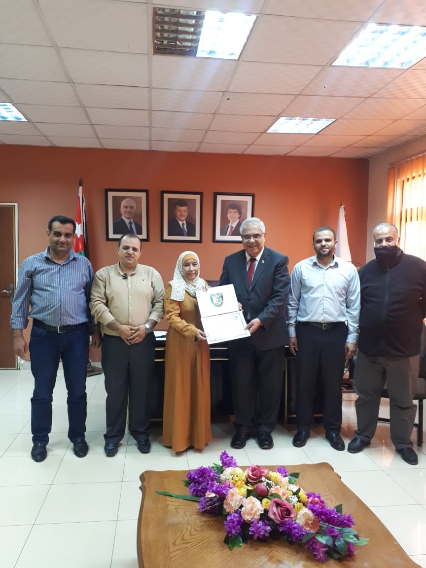 للموظفة صباح عبد الرحمن العموش ، وبحضور نائب عميد الكلية وأسرة العمادة.
