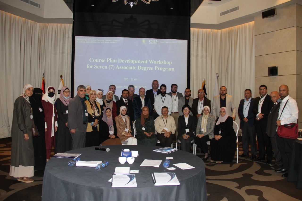 مندوبا عن رئيس جامعة البلقاء التطبيقية الاستاذ الدكتور عبدالله سرور الزعبي رعى نائب الرئيس للشؤون الاكاديمية الاستاذ الدكتور سعد ابو قديس فعاليات ورشة العمل بعنوان " خطة تطوير المساقات في جامعة البلقاء التطبيقية لسبع تخصصات جامعية " والتي نظمها مكتب العلاقات الخارجية والتعاون الدولي في الجامعة بالتعاون مع وكالة كويكا الكورية وجامعة دونج الكورية بحضور مدير كويكا في الأردن السيد دونغ سونغ سو والخبيرة الدكتوره جي سونغ من جامعة دونج يي وضابط ارتباط المشروع هونامي شو والدكتورة دانا محادين مديرة مكتب العلاقات الخارجية والتعاون الدولي في جامعة البلقاء التطبيقية والدكتور ايمن العلاوين مدير مركز التطوير وضمان الجودة في الجامعة وعددا من أعضاء هيئة التدريس المشاركين في الدورة.