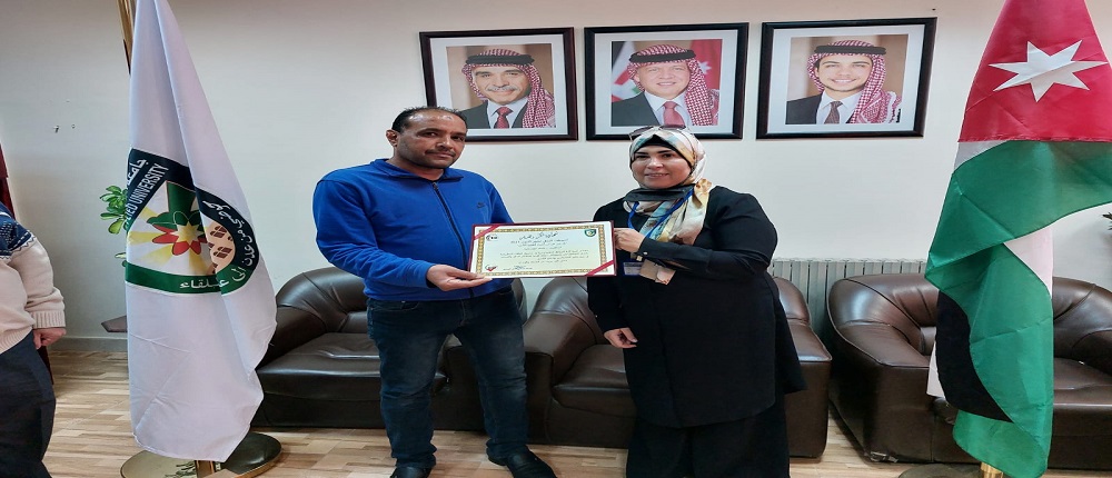 تجسيداً لتوجيهات إدارة جامعة البلقاء التطبيقية ممثلة برئيسها الأستاذ الدكتور عبدالله سرور الزعبي في تحسين الأداء والتطوير الوظيفي وخلق روح التنافس المثالي في العمل لدى الموظفين , سلمت عميدة كلية الزراعة التكنولوجية الاستاذ الدكتورة امل العبادي شهادة الموظف المثالي عن شهر تشرين اول 2021 للموظف ابراهيم ابو سعيد .
