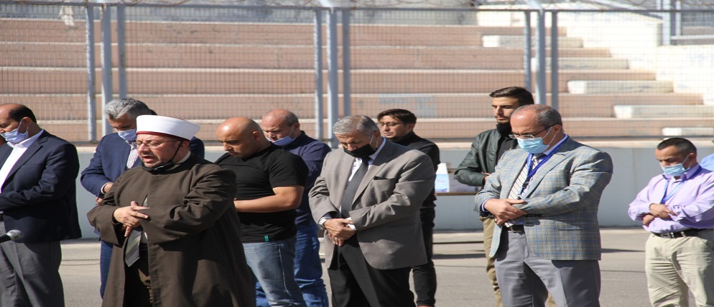 وأدى الصلاة عدد اعضاء الهيئتين التدريسية والادارية والطلبة في ملعب الجامعة ،وأم مفتي البلقاء فضيلة الدكتور هاني العابد المصلين كما القى خطبة أوصى فيها المسلمين بتقوى الله عز وجل في السر والعلن ودعوته سبحانه وتعالى خوفا وطمعا داعيا الجميع الإخلاص بالدعاء إلى الله سبحانه وتعالى طلبا للغيث.