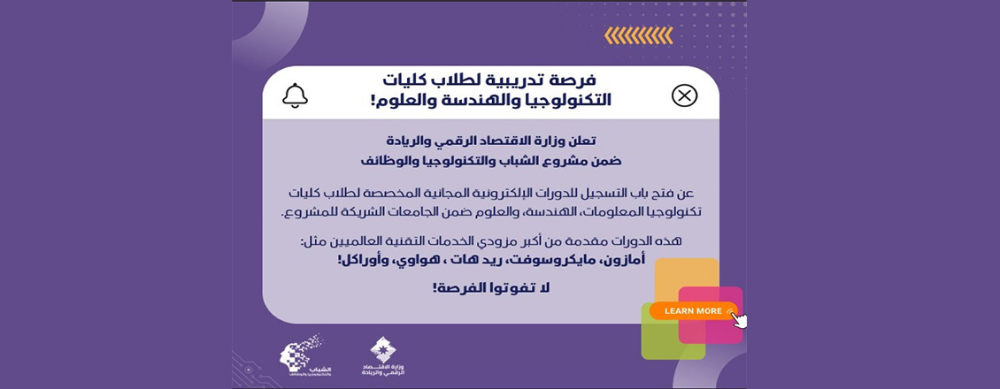هذه الفرصة متاحة حصرياً لطلبة الجامعات الشريكة ضمن مشروع الشباب والتكنولوجيا والوظائف، علما بان اخر موعد للتسجيل هو 27/3/2025.