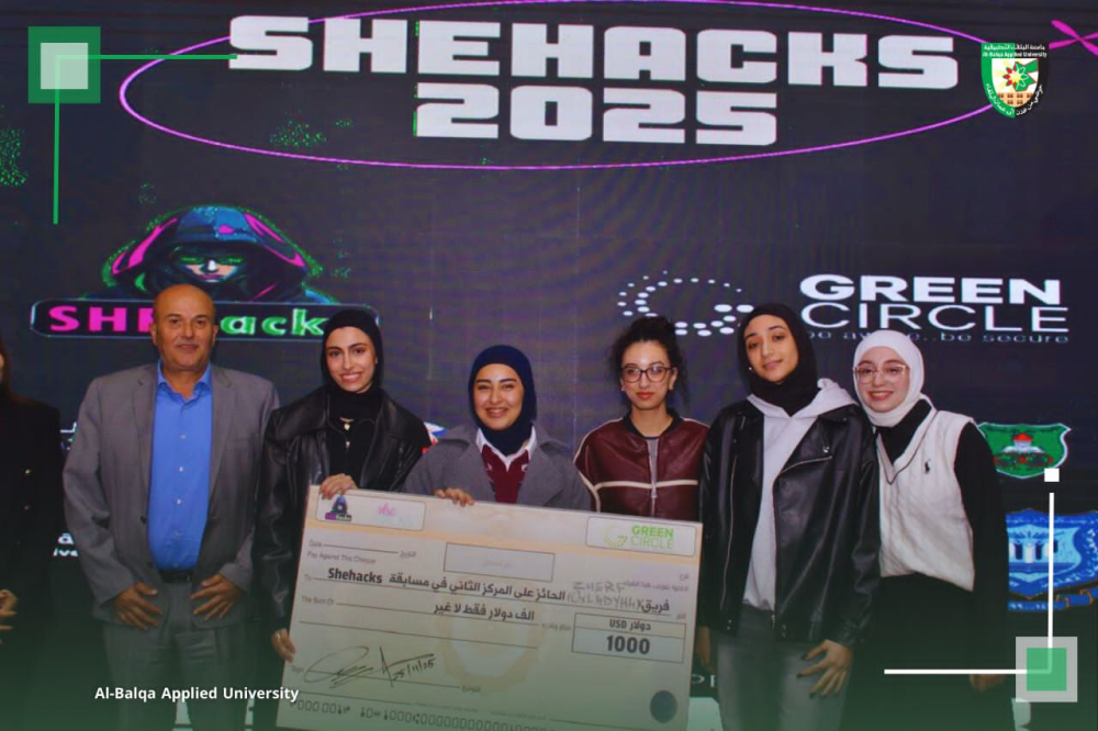 حصد فريق كلية الذكاء الاصطناعي في جامعة البلقاء التطبيقية المركز الثاني على مستوى الجامعات الأردنية في مسابقة SHEHACKS 2025 للأمن السيبراني، والتي تُعد من أهم المسابقات الوطنية المخصصة لتمكين الطالبات في هذا المجال.