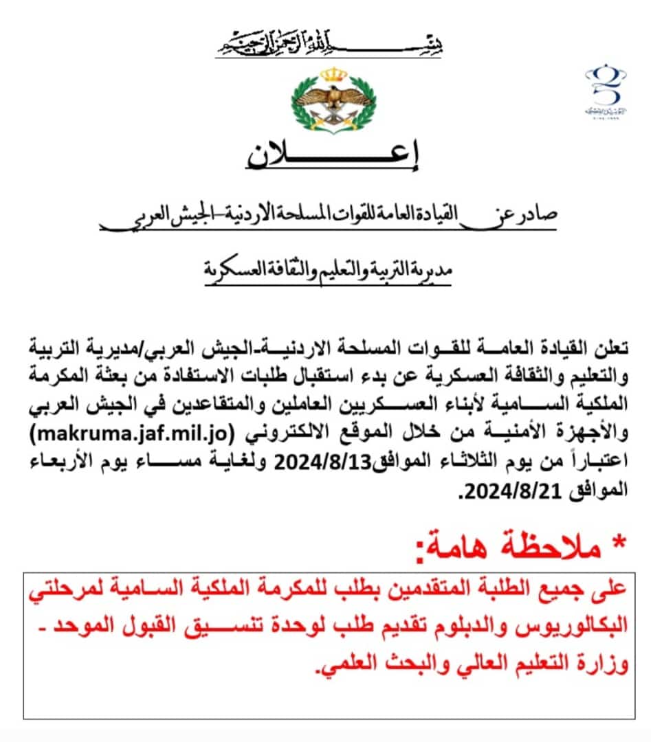 إعــلان هــام لطلبة جامعة البلقاء التطبيقية بواسطة