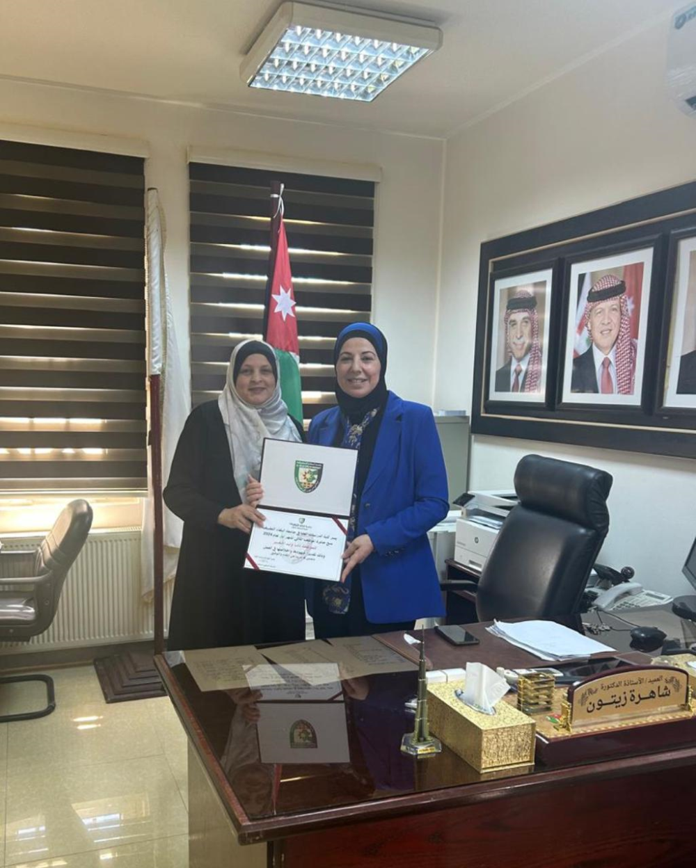 شهادة الموظف المثالي عن شهر أيار 2024 للموظفة ناديا الجغبير / كلية الدراسات العليا
