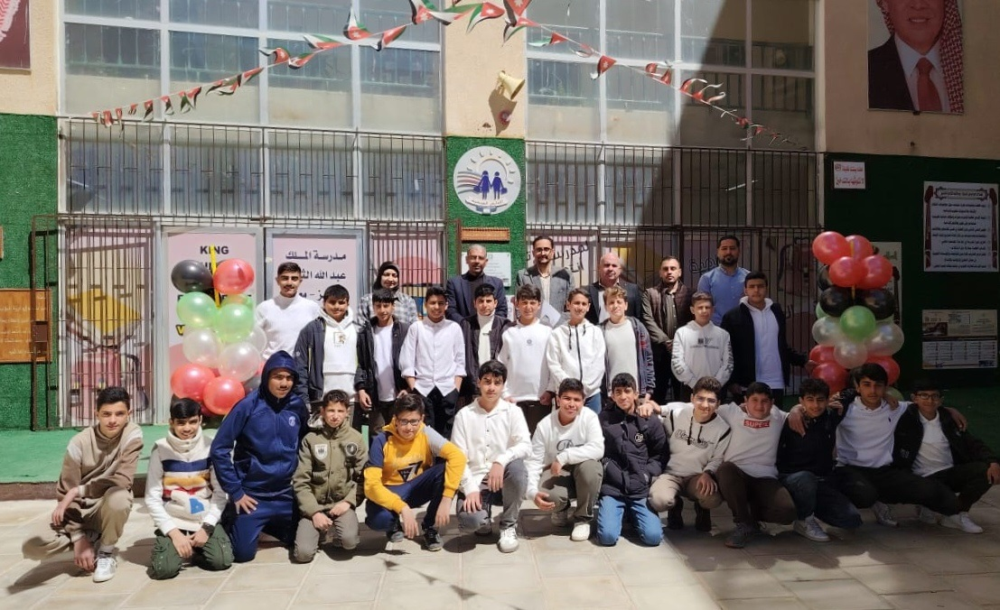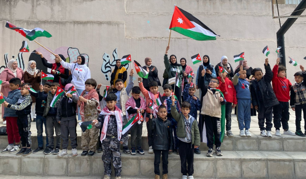 احتفال طلبة كلية الأميرة رحمة الجامعية بيوم العلم الأردني في مدرسة محمد رجا المسعود للبنين